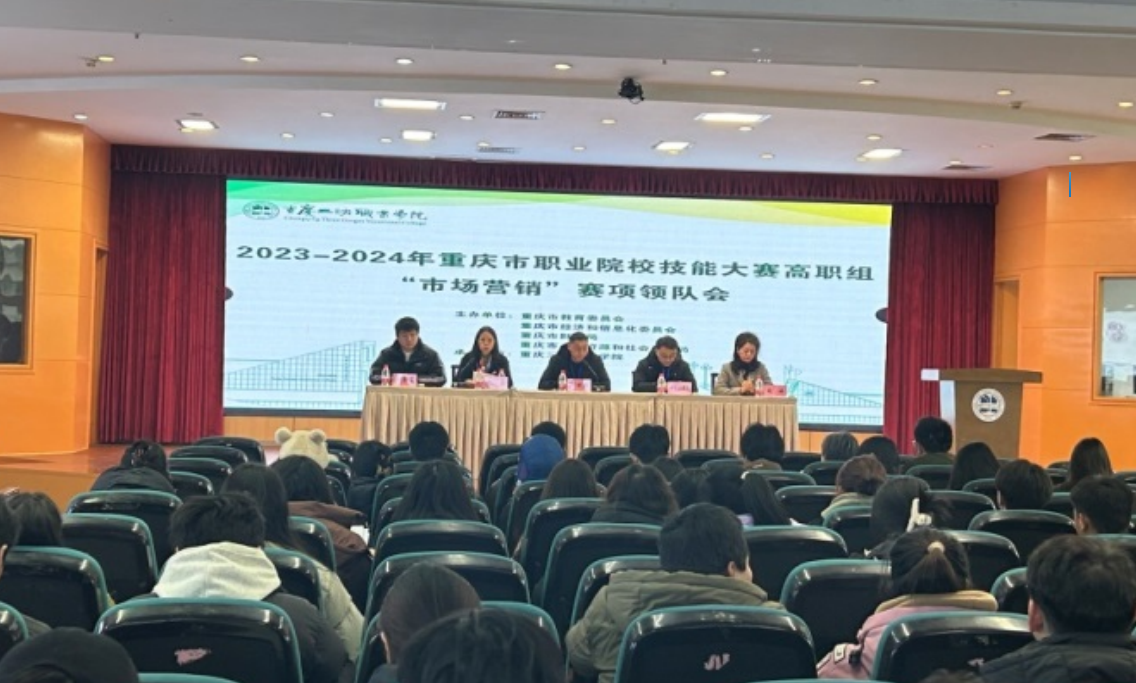 12月26日下午,2023-2024年重庆市职业院校技能大赛(高职组)市场营销赛项在重庆三峡职业学院沙龙校区学术报告厅举行开幕式。