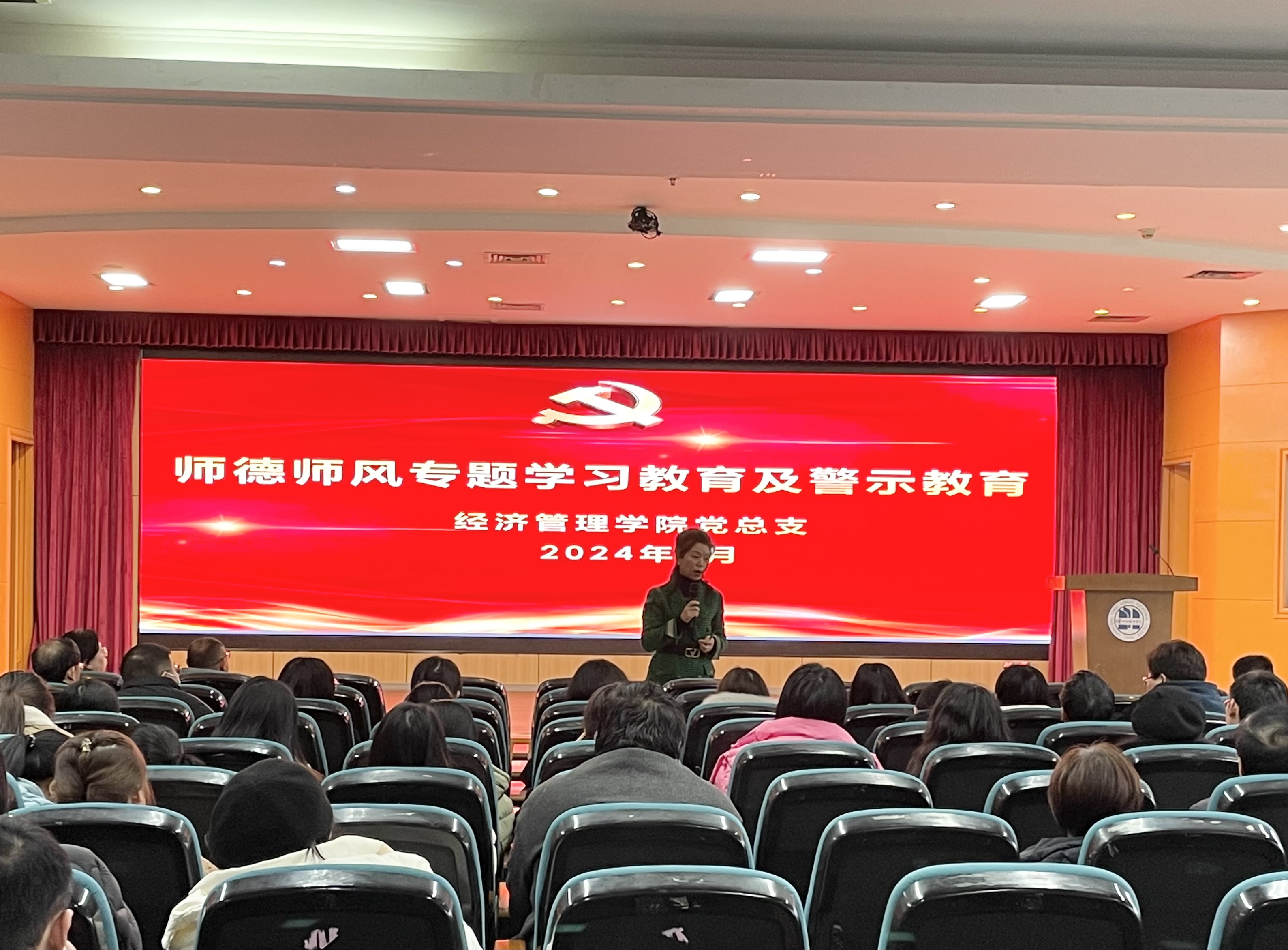 1月16日下午,经济管理学院在沙龙校区综合楼学术报告厅召开1月政治理论学习和师德师风警示教育,会议由党总支组织员李静主持,全体教职工参加本次学习。