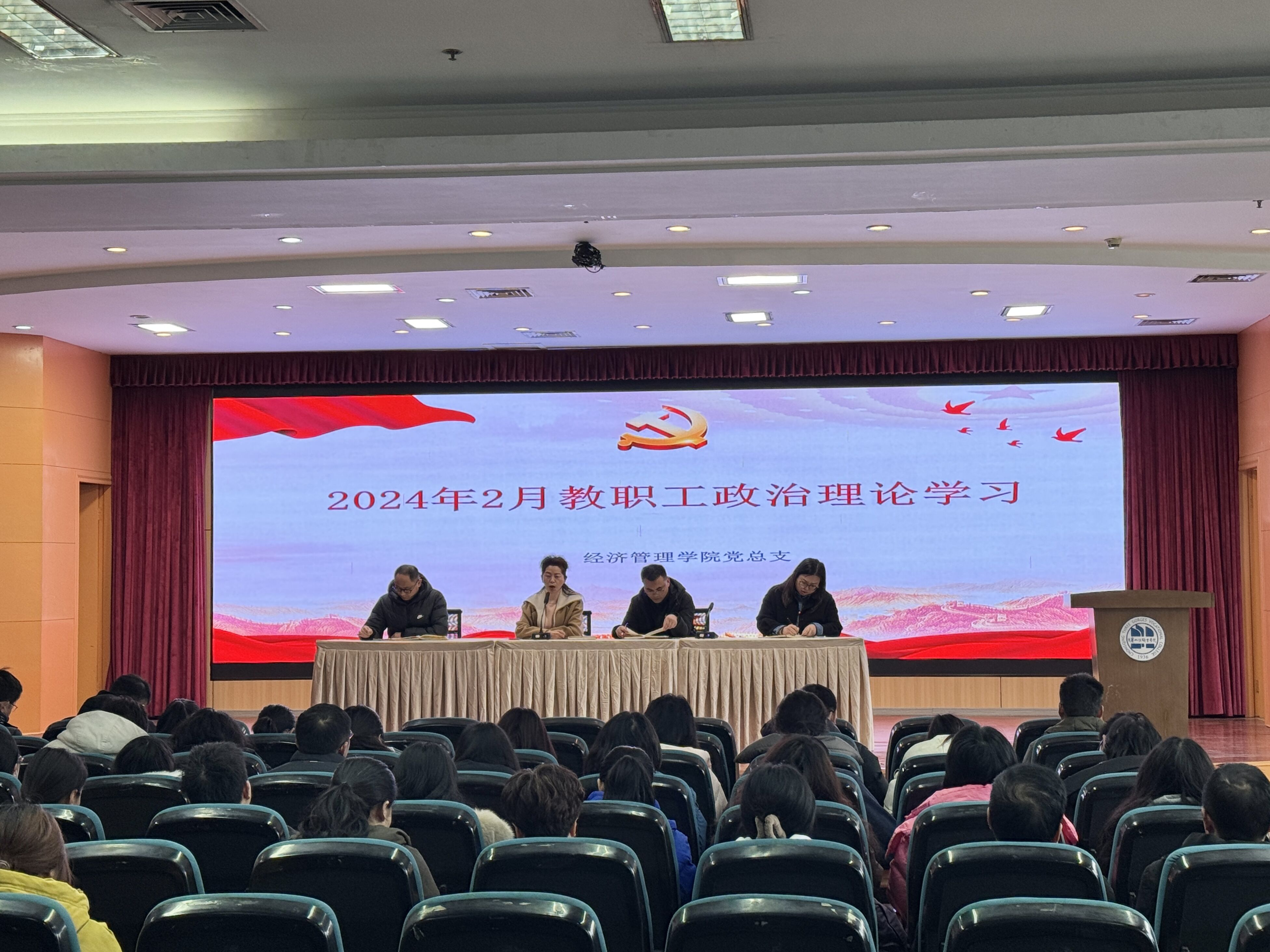 2月29日上午,经济管理学院在沙龙校区综合楼2楼学术报告厅召开2月政治理论学习和师德师风警示教育,会议由党总支组织员李静主持,全体教职工参加本次学习。