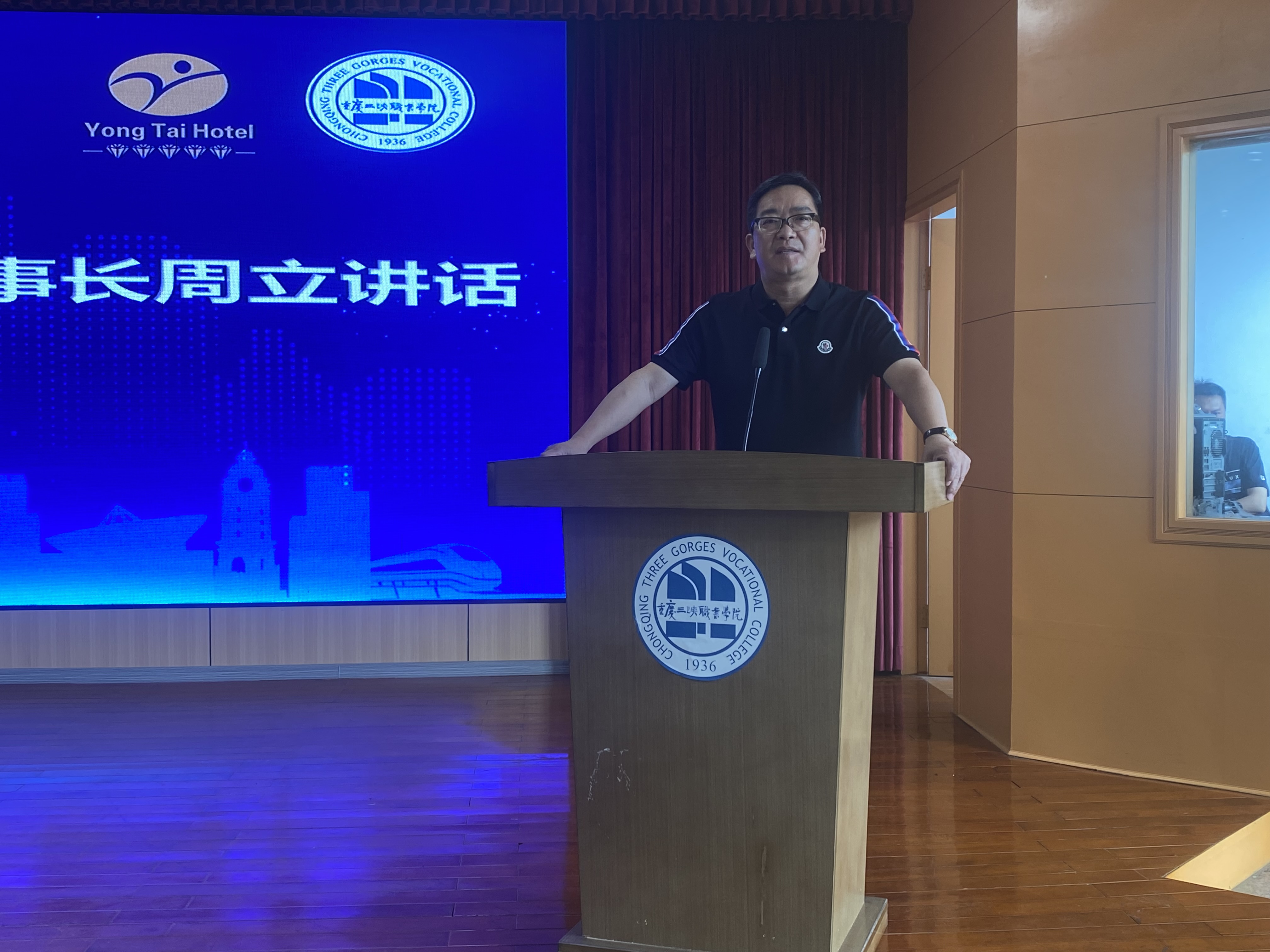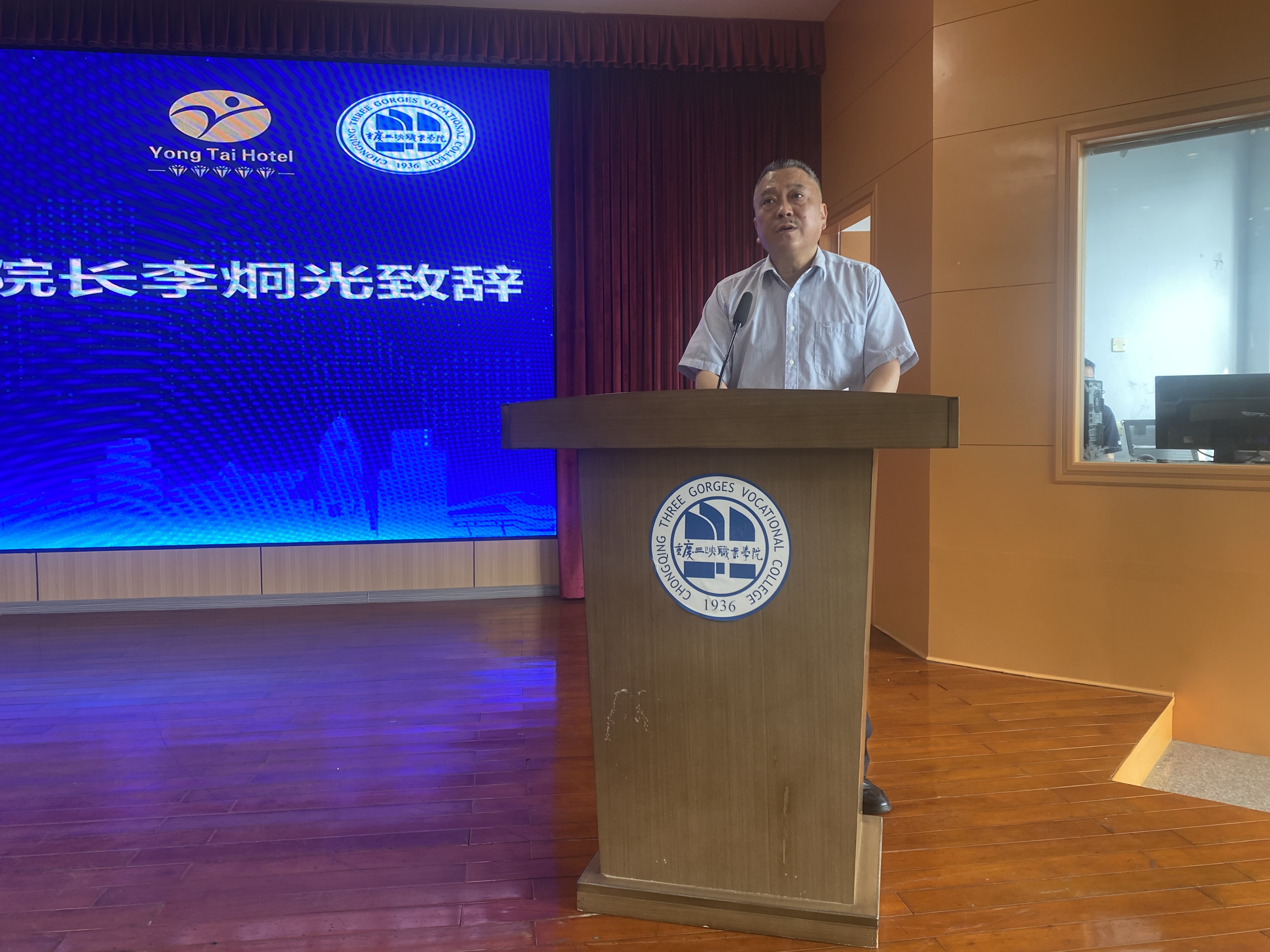 4月28日上午,重庆三峡职业学院永泰柯岩酒店产业学院揭牌及捐赠仪式在沙龙校区学术报告厅举行。学院院长李炯光,副院长赵福奎,副院长张传师,浙江柯桥永泰柯岩酒店董事长周立,柯桥永泰柯岩酒店总经理施国财,学院教务处、对外合作交流处、财务处、经济管理学院等部门负责人出席仪式。经济管理学院全体教师、学生代表共计200余人到场见证了这极具意义的辉煌时刻。仪式由赵福奎副院长主持。