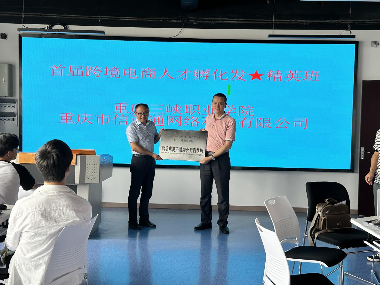 为积极响应国家号召,不断探索深层次校企合作模式,协同培养高素质跨境电商人才,推动电商行业高质量发展,6月17日,重庆三峡职业学院、重庆市信达通网络科技有限公司首届跨境电商人才孵化精英班在沙龙校区综合楼801实训室举行开班仪式。经济管理学院副院长陈现军、重庆市信达通网络科技有限公司总经理彭佳以及45名学生参加了开班仪式,仪式由物流教研室主任王平主持。