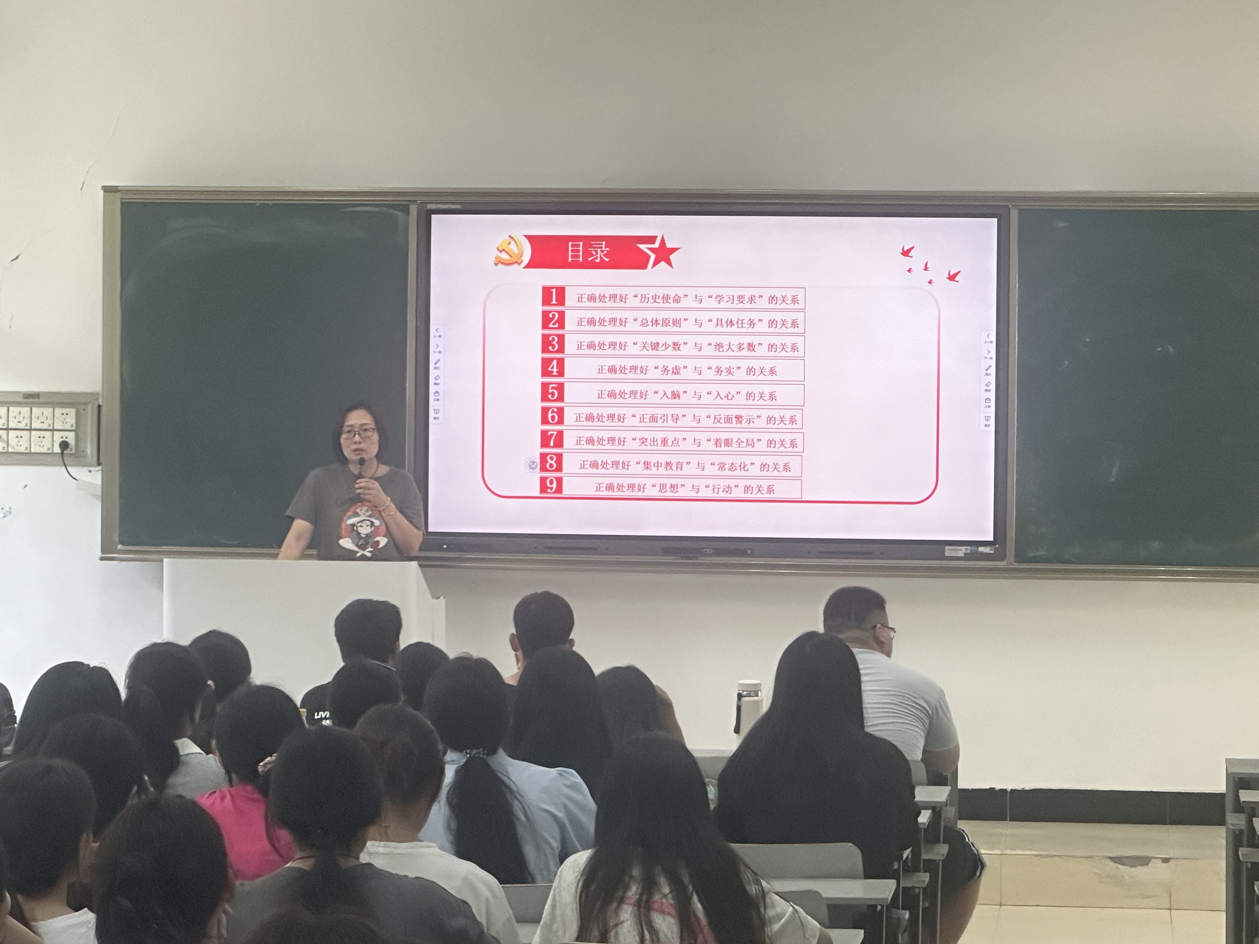 党课上,潘琪书记首先强调了党纪学习教育的重要性,深入讲解了“处理好九对关系 推动党纪学习教育走深走实”的意义,并结合实际案例详细阐述了如何正确处理好“思想与行动”等九对关系。