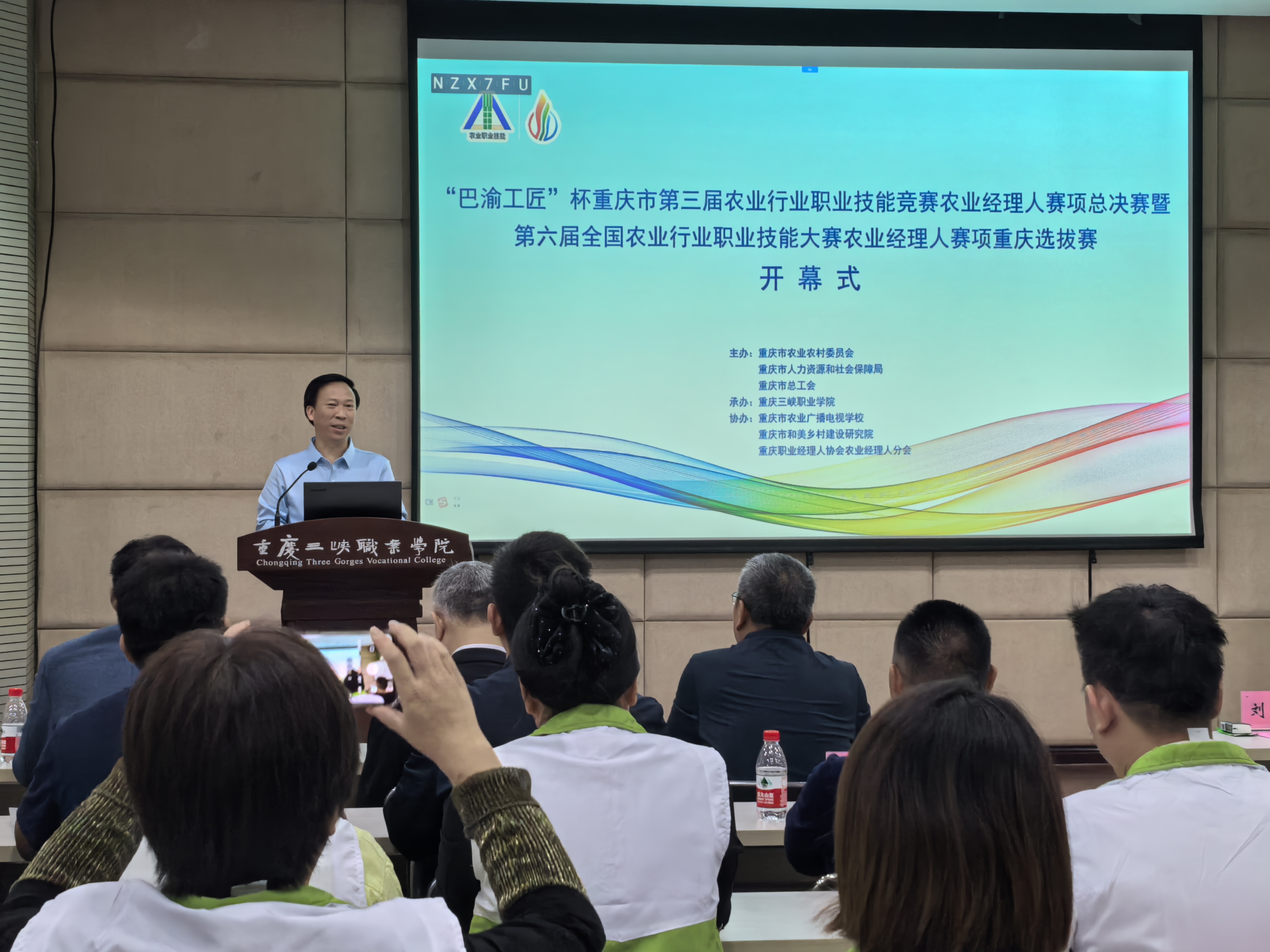 为深入贯彻落实党的二十届三中全会精神和习近平总书记关于技能人才工作的重要指示精神,加快推进我市农业农村现代化,全面提升重庆市农业经理人职业素养与创新能力。10月12日9:00,由重庆市农业农村委员会、重庆市人力资源和社会保障局、重庆市总工会主办,重庆三峡职业学院承办,重庆市农业广播电视学校、重庆市和美乡村建设研究院、重庆职业经理人协会农业经理人分会协办的“巴渝工匠”杯重庆市第三届农业行业职业技能竞赛农业经理人赛项总决赛暨第六届全国农业行业职业技能大赛农业经理人赛项重庆选拔赛开幕式在重庆三峡职业学院博雅楼207会议室举行。重庆市农业农村委员会社会事业处处长刘明,重庆市职业经理人协会农业经理人分会会长汤文志,重庆市农业广播电视学校科长杜彦菲,重庆市和美乡村建设研究院综合部部长郎佳林,重庆三峡职业学院院长李炯光,以及来自重庆16区县的30名参赛选手和市内外14名裁判参加开幕式,开幕式由学院副院长袁德梽主持。