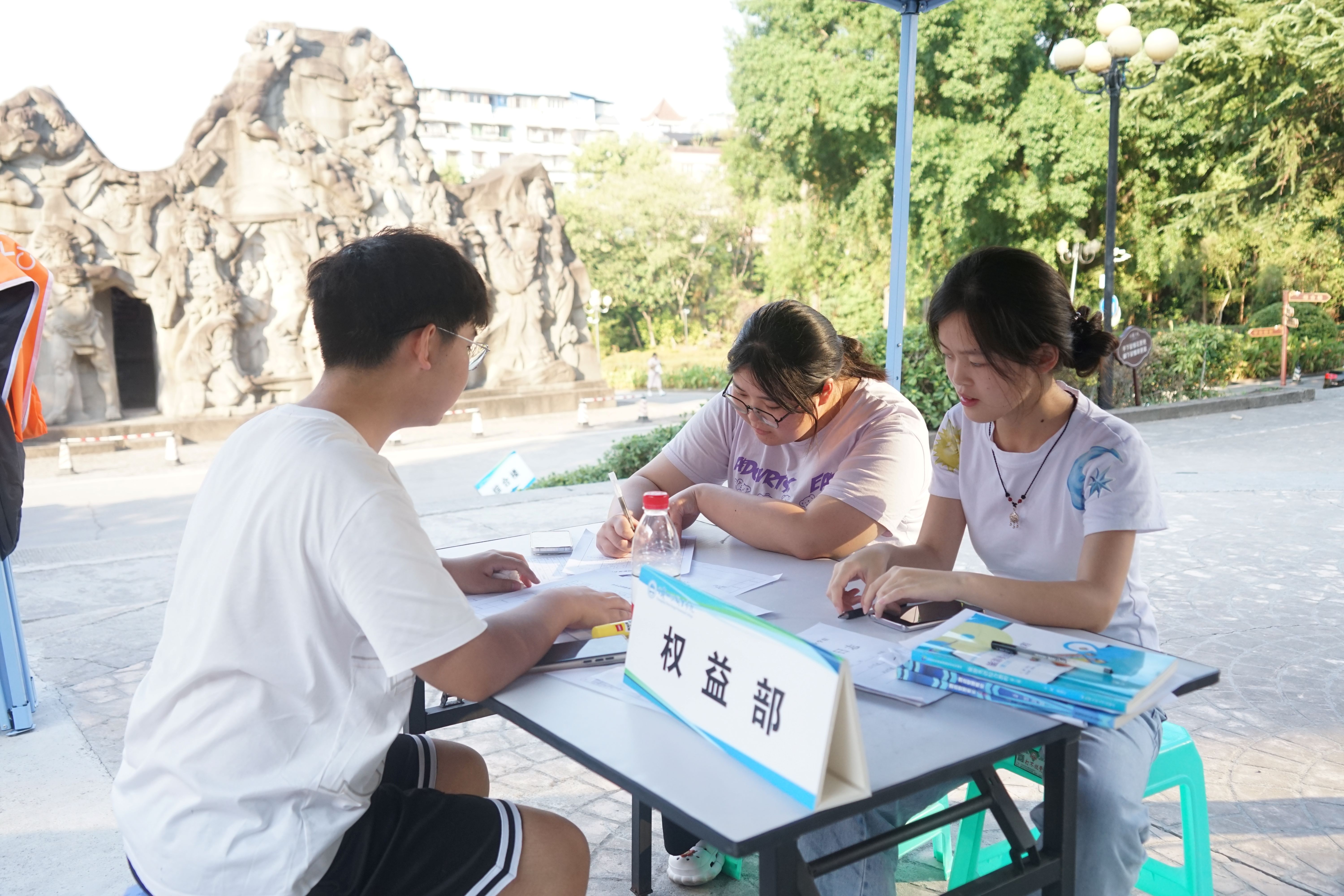 招新现场气氛热烈,人头攒动,各部门的招新摊位前都围满了前来咨询和报名的新生,工作人员热情地为新生们介绍部门工作内容、解答疑问,并鼓励他们根据自己的兴趣和特长选择适合的部门。