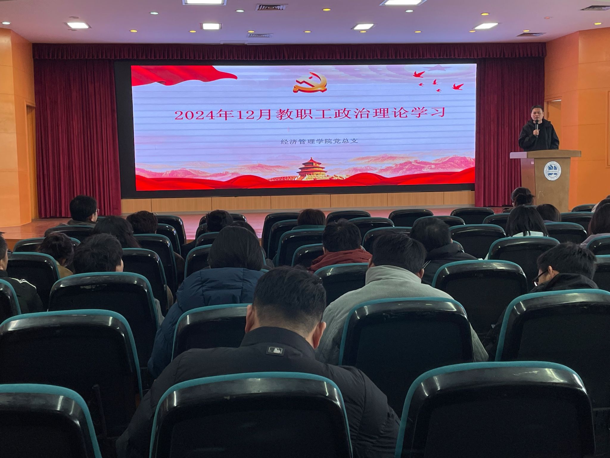 经济管理学院于12月17日下午在沙龙校区综合楼二楼学术报告厅召开了全体教职工大会暨集中政治学习。本次会议由学院专职组织员李静主持。