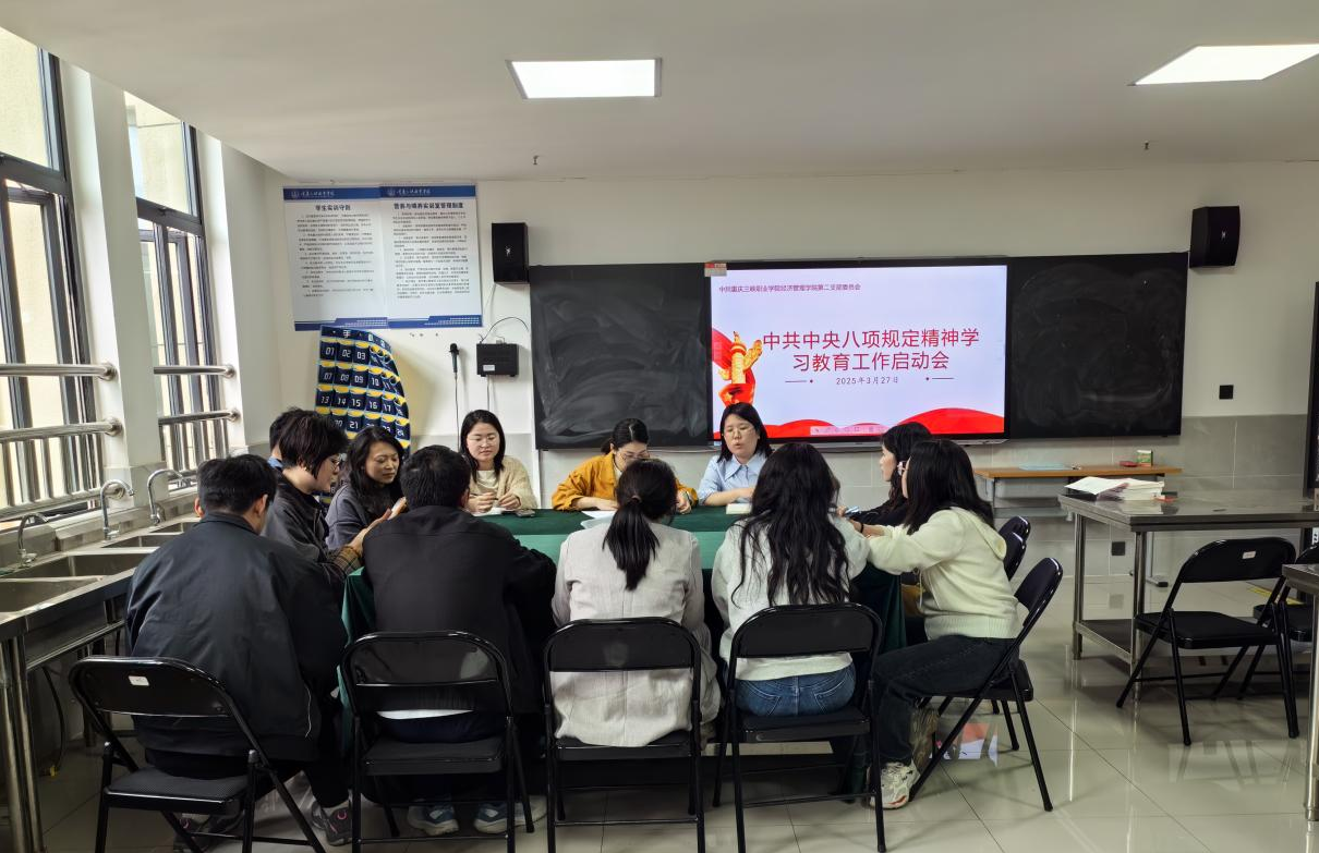 3月27日下午,经济管理学院第二党支部在龙都校区致远楼519教室召开深入贯彻中央八项规定精神学习教育工作启动会,会议由支部书记谢丽娜主持,支部全体党员参加。