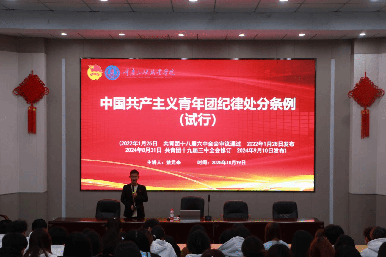 为深入学习贯彻团中央关于基层组织建设的重要精神,进一步加强基层团干部队伍建设,提升新任团支部书记的理论素养和实务能力,10月19日,重庆三峡职业学院团委在龙都、龙宝两校区同步组织开展了2025级团支部书记履职能力提升培训。全校2025级所有班级团支部书记参加了此次系统学习。