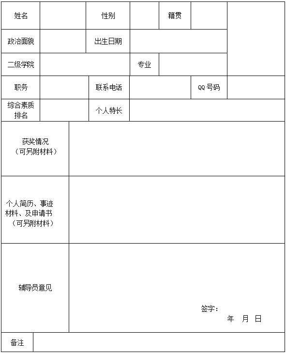 重庆三峡职业学院 “优秀学习委员”推荐表
