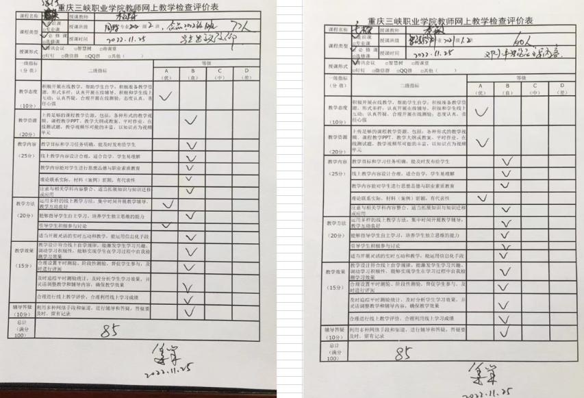 为确保线上教学质量不打折扣,自开展线上教学以来,重庆三峡职业学院通过“云端巡课”严把教学质量关,实现了对线上教学的全过程管理,保障了教学成效。