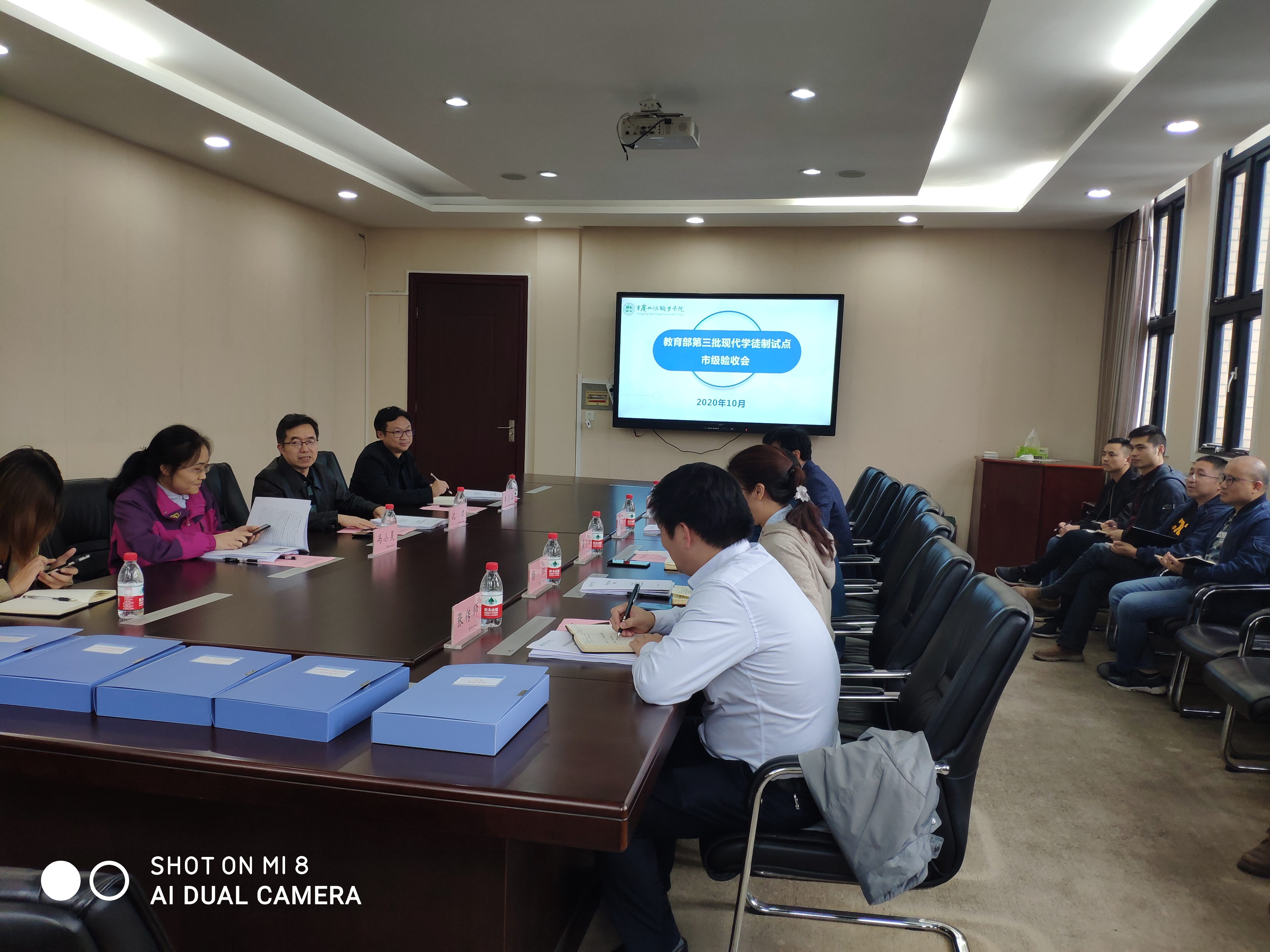10月27日下午3点,教育部第三批现代学徒制试点项目2020年市级验收工作在行政楼二楼202会议室顺利举行。会议由重庆三峡医药高等专科学校副校长沈力主持,市教委专家、教务处相关人员、项目组成员参加了此次验收工作会。