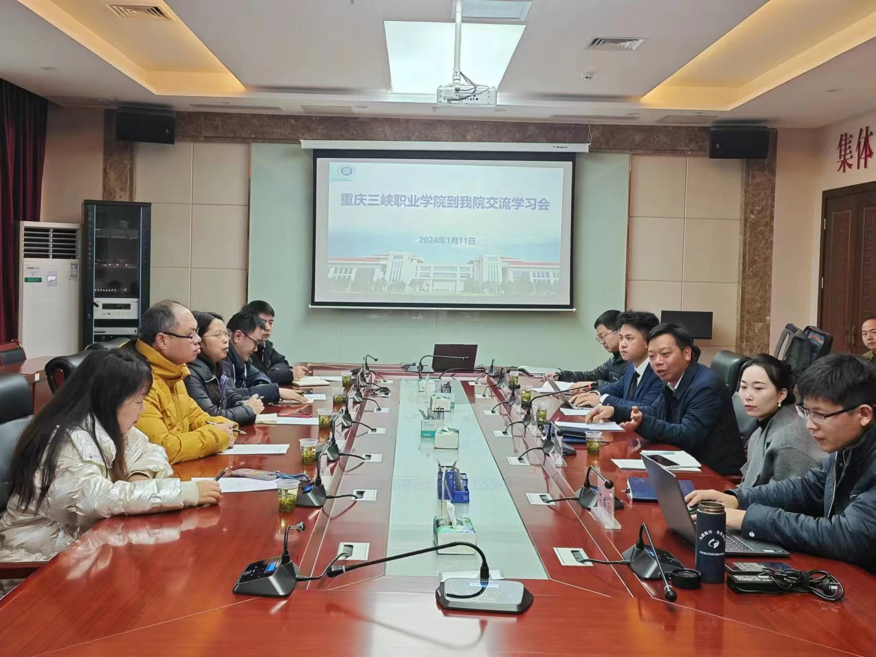 2024年1月11日重庆三峡职业学院教务处杨俭副处长,网络安全信息中心赵小冬主任等一行5人到贵州电子科技职业学院开展教学管理数字化建设学习交流。