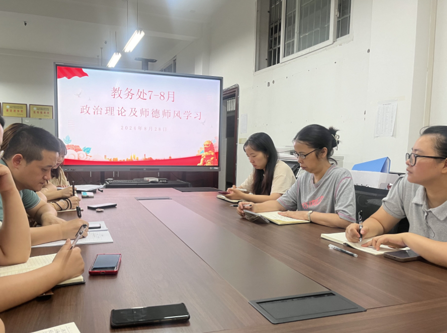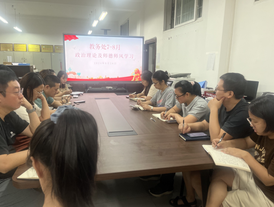 根据学校教职工政治理论学习安排以及师德师风建设工作有关部署。8月28日下午,教务处在农林楼101会议室集中开展了7-8月教职工政治理论和师德师风集中学习会议,教务处及图书馆教职工19人参加会议,本次会议由杨俭副处长主持领学。
