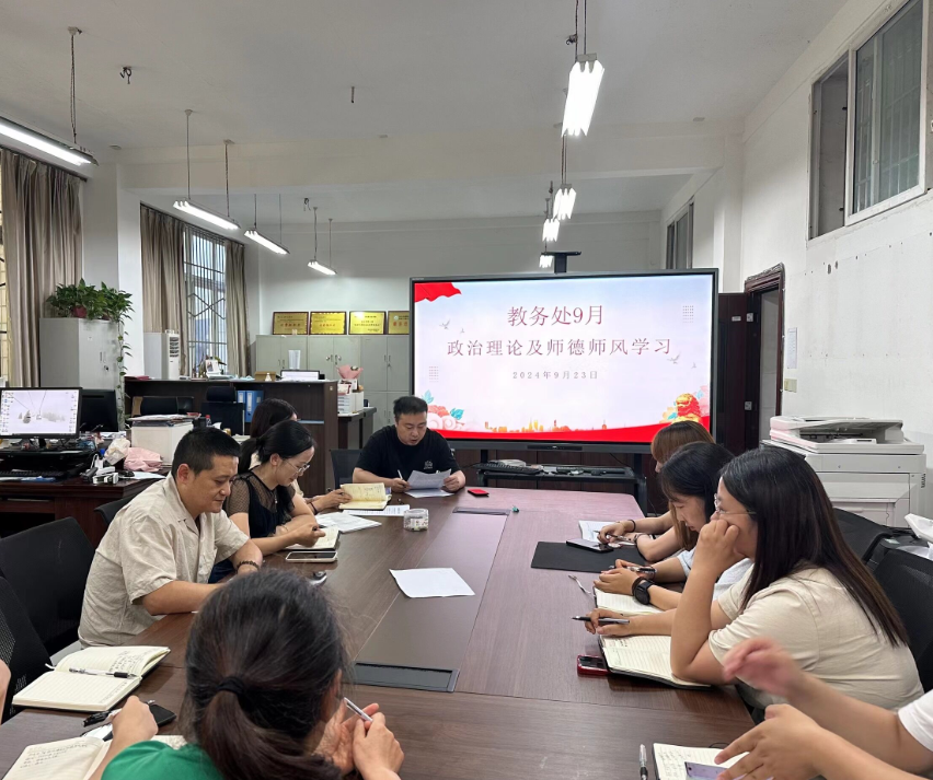 根据学校教职工政治理论学习安排以及师德师风建设工作有关部署。9月23日下午,教务处在农林楼101会议室集中开展了9月教职工政治理论和师德师风集中学习会议,教务处及图书馆教职工18人参加会议,本次会议由杨俭副处长主持领学。