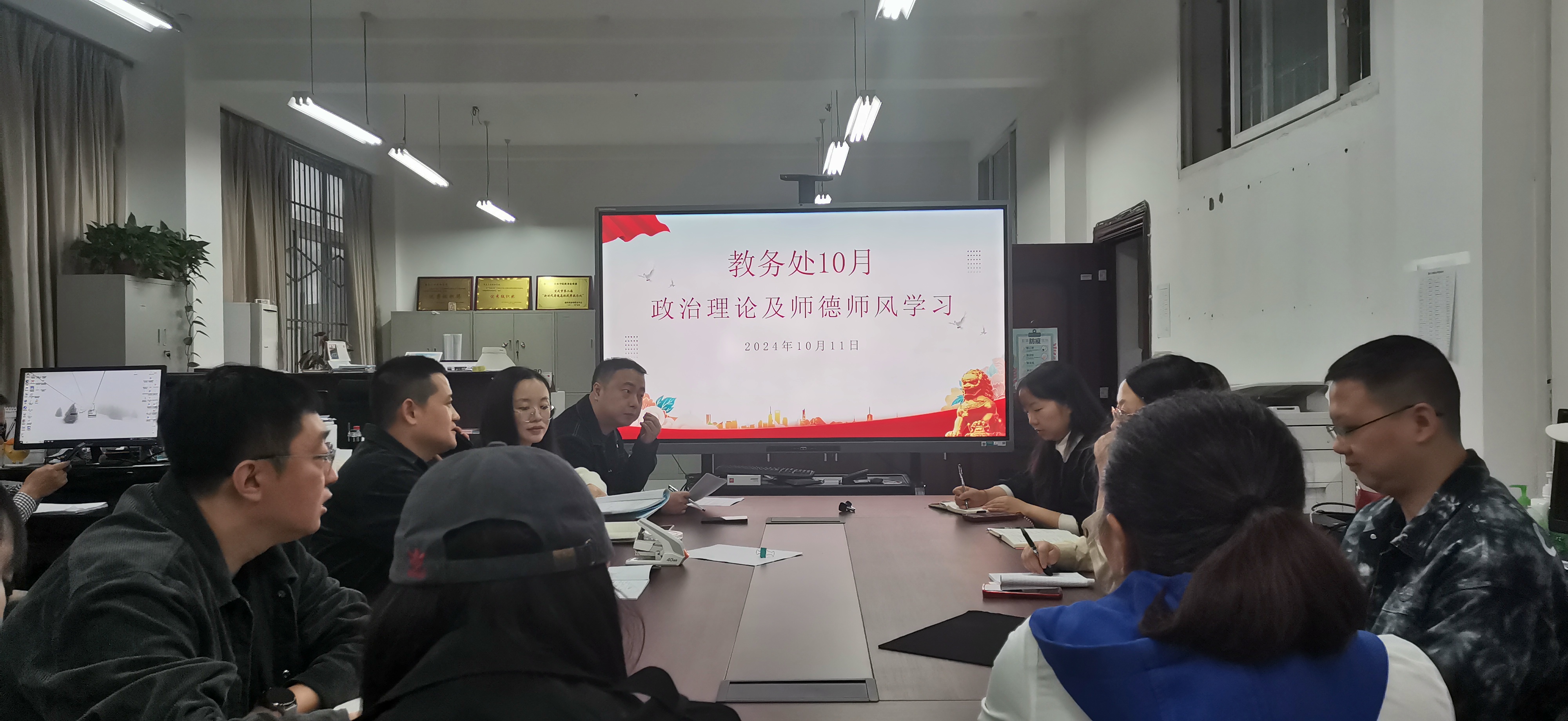 根据学校教职工政治理论学习安排以及师德师风建设工作有关部署。10月11日上午,教务处在农林楼101会议室集中开展了10月教职工政治理论和师德师风集中学习会议,教务处及图书馆教职工18人参加会议,本次会议由杨俭副处长主持领学。