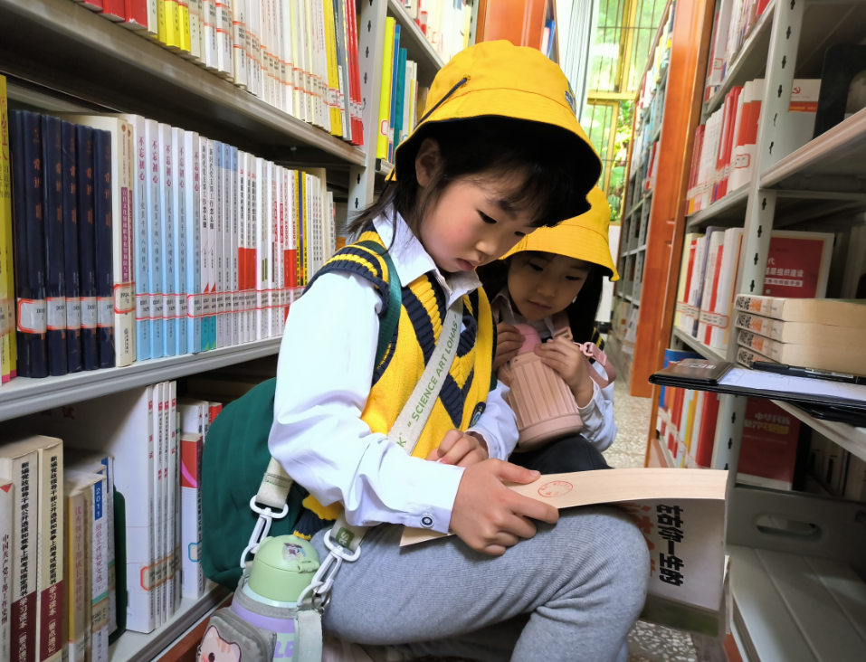 小朋友们穿着整齐的园服,充满好奇地走进图书馆,受到了图书馆老师们的热情接待。从甲骨文谈到四大发明,从文字的产生、印刷术和造纸术的发明,再到图书的出现、分类和阅读的意义……小朋友们在图书馆馆长的引导下,积极互动,踊跃答题,收获了许多知识和象征荣誉的印戳,小脸儿上洋溢着快乐的笑容。自由阅读环节,小朋友们翻看了天文、旅游、艺术、动植物等多种多样的图书,绚丽的图画和新奇的知识让小朋友们叹为观止,更有小朋友在查找图书时发现书架上相同的图书是放在一块儿的、每本图书都有一个圆圆的印章……徜徉在书海的小朋友们好像是推开了新世界的大门,不住地探索,迫不及待地分享,他们的每一个发现和提问也都得到了老师们的肯定和回应。