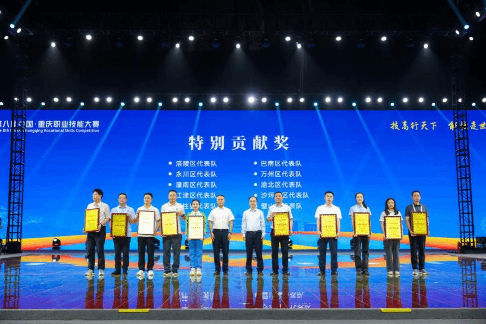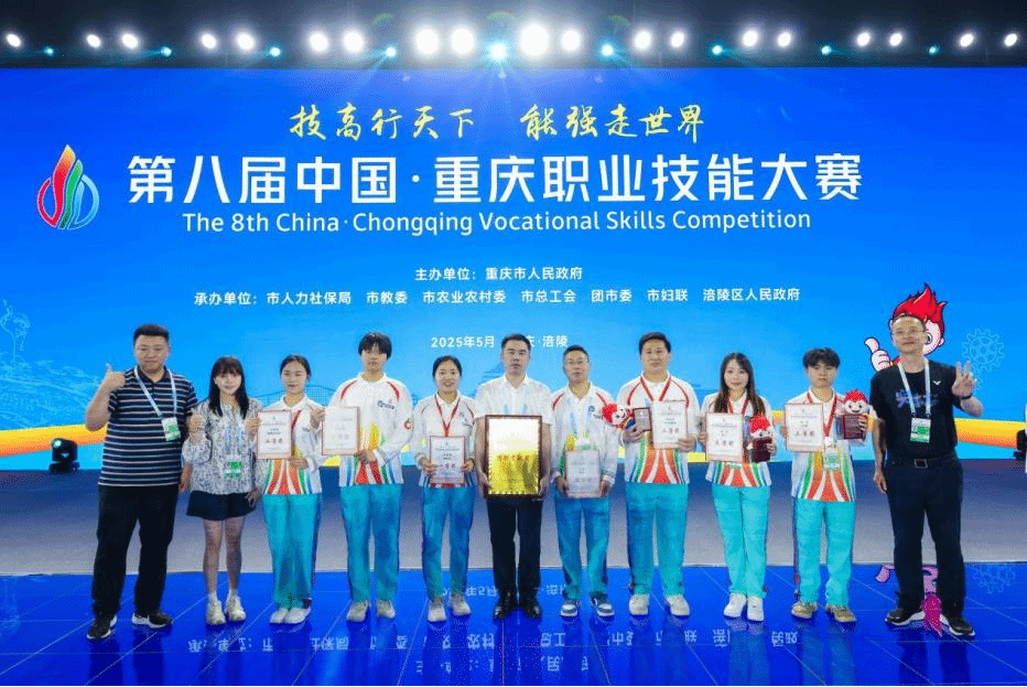 5月23日,第八届中国·重庆职业技能大赛在涪陵区圆满收官。本次比赛,我院选派11名优秀选手加入万州区代表队,参与电子设备装调、云计算、茶艺等赛项角逐。参赛师生秉持"精益求精、追求卓越"的工匠精神,充分展现扎实的专业功底和创新能力,在多个赛项中取得了优异成绩,并助力万州区荣获大赛“特别贡献奖”。现将获奖情况通报如下: