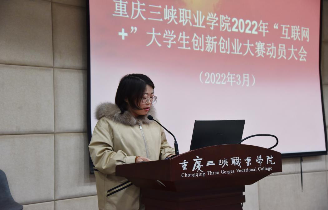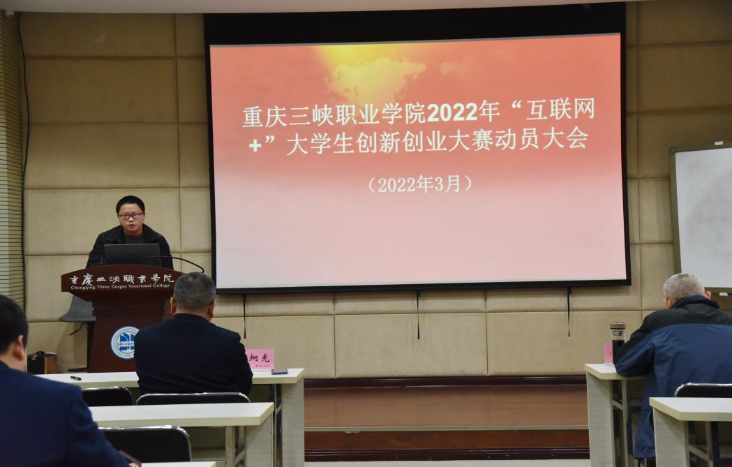 2022年3月3日,为深入贯彻落实《国务院办公厅关于深化高等学校创新创业教育改革的实施意见》以及重庆市教委《第八届中国国际“互联网+”大学生创新创业大赛重庆赛区项目培育实施方案》等文件精神,积极推动学院创新创业教育的改革,强化创新创业实践,促进以创新引领创业、创业带动就业,实现学院毕业生更高质量创业就业。重庆三峡职业学院2022“互联网+”大学生创新创业校赛动员大会在博雅楼207会议室隆重召开。学院院长李炯光、党委副书记张智、副院长赵福奎出席,院党政办公室、党委宣传部、学生工作部、教务处等相关职能部门负责人、各二级学院主要负责人和创新创业项目指导教师、《创新创业教育》授课教师及学院就业创业工作人员参加此次动员大会。动员大会由党委副书记张智主持。