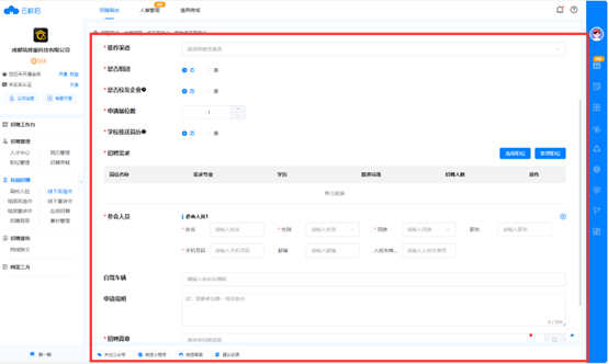 申请入驻需要选择招聘专业与申请理由,如上图。
