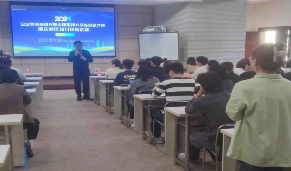 为进一步提升全校创新大赛参赛备赛水平,做好项目挖掘和培育工作,有针对性做好我校2024年中国国际大学生创新大赛备赛工作,由重庆市教委主办、重庆三峡职业学院承办的“企业导师高校行暨中国国际大学生创新大赛(2024)重庆赛区万州片区项目培育活动”4月26日上午,在我校成功开展。来自我校各二级学院创新工作分管领导、团委负责人、通识学院《大学生创新创业教育》授课教师、我校本年度中国国际大学生创新大赛拟参赛项目指导教师团队、项目团队成员以及来自万州区部分兄弟高校的部分师生代表出席了本次活动。