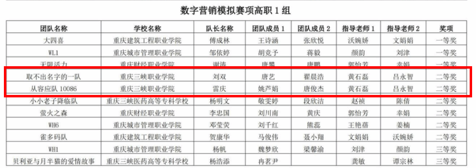 6月20日,第十二届“学创杯”全国大学生创业综合模拟大赛重庆市选拔赛在重庆建筑工程职业学院圆满落幕。本次大赛由重庆市教育委员会主办,重庆建筑工程职业学院承办,杭州贝腾科技有限公司协办。经过激烈角逐,我校参赛团队表现卓越,最终荣获数字营销赛道二等奖2项、三等奖1项,创业综合赛道三等奖1项,实现了我校在该项赛事的新突破。