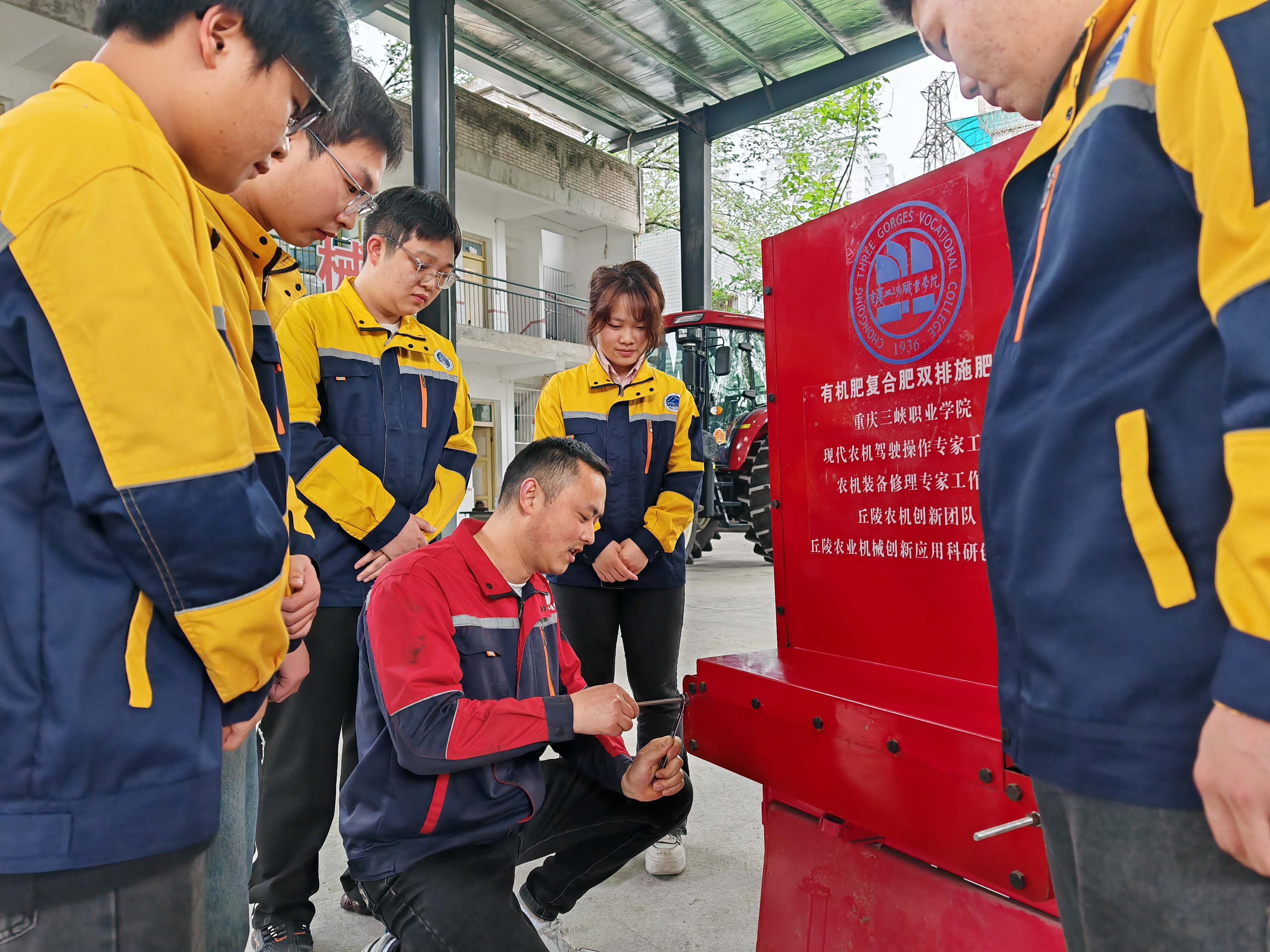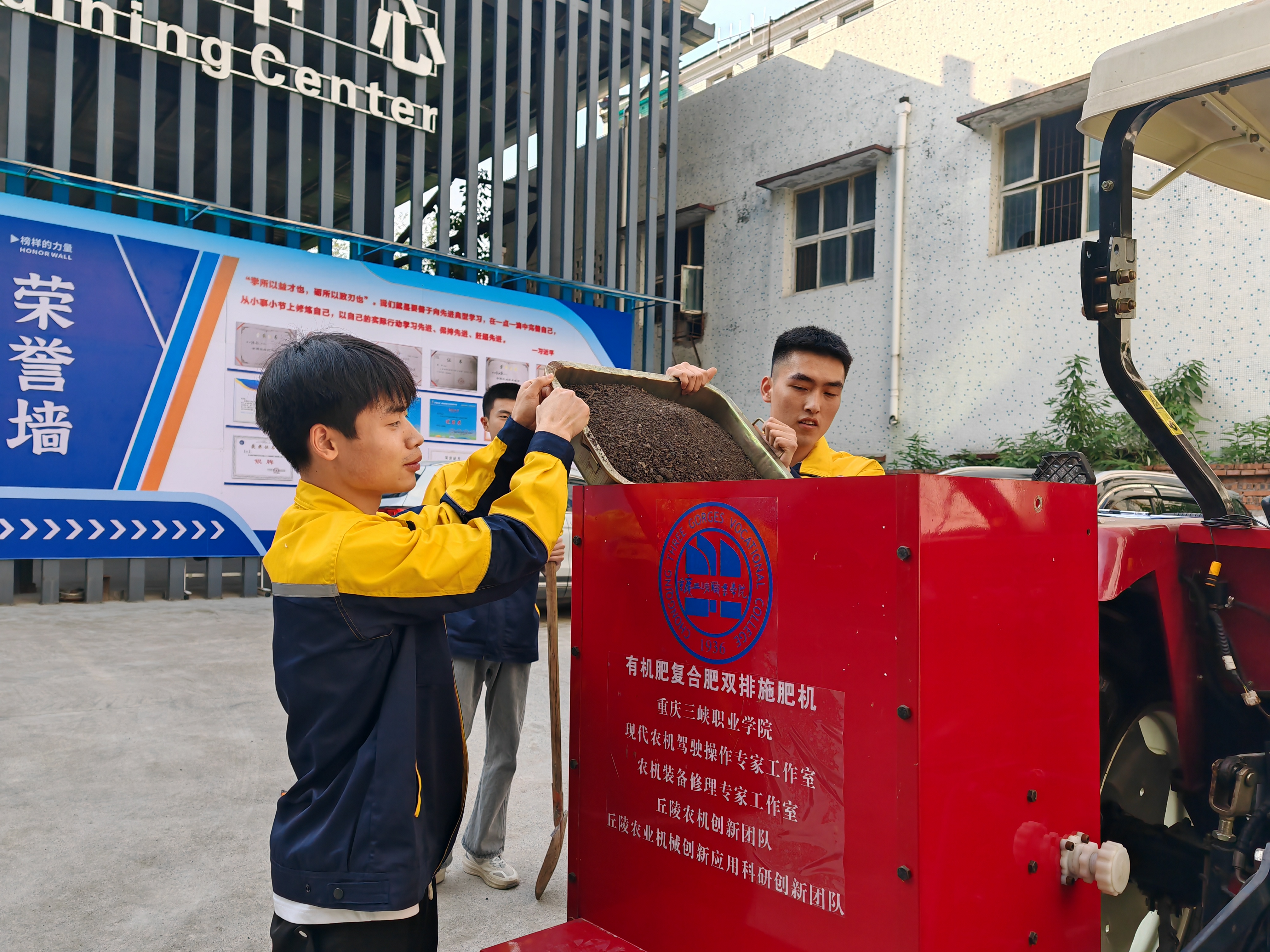 在重庆三峡职业学院沙龙校区现代农业工程实训中心,一群师生正围绕着一款新型有机肥复合肥双排施肥机忙碌着。这项由农机科研团队指导,学生积极参与的研发项目,旨在解决丘陵山区大棚固态有机肥施肥效率低的问题,为大棚农业生产提供更加高效、环保的施肥解决方案。