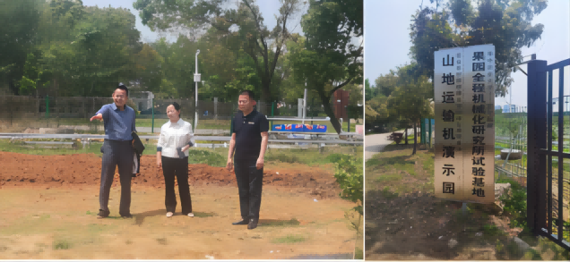 随后,在华中农业大学工学院副院长李善军教授的带领下,参观了果园全程机械化研究所试验基地、山地运输机演示园,并就丘陵山地科研方向的选择、丘陵山地果园整体解决方案进行了深入交流。李善军教授介绍了果园机械化生产装备在湖北秭归、巴东等多地推广应用情况,并就科研工作提供了几点建议。第一,科研方向的选择要紧密对接一线生产痛点难点,要落地落实落细,切忌假大空;第二,科研项目申报要具备统筹思维,研究方向尽量聚焦产业链,逐渐形成产业链转型升级的整体解决方案。