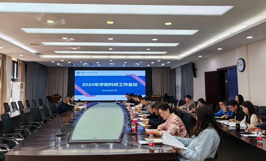 为全面学习贯彻习近平总书记关于新质生产力的重要论述,落实2024年全市科技工作会议精神,助推学院科研工作再上新台阶,2024年3月21日下午,我院在行政楼303召开2024年科研工作会议,李炯光院长、科研处、各二级学院院长及分管科研领导、科研联络员及相关工作人员参加会议,会议由科研处负责人聂青玉主持。