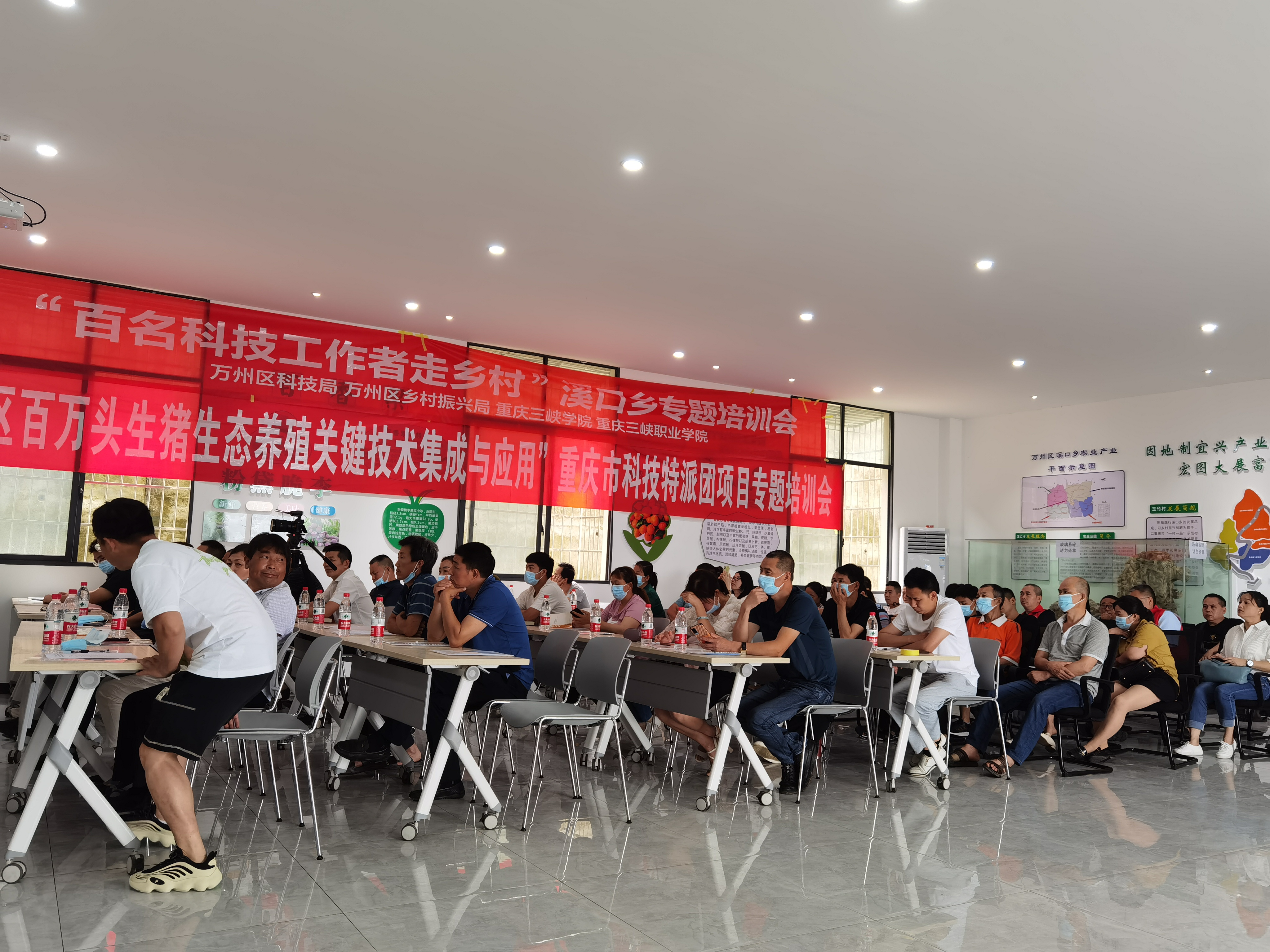 为更好落实巩固脱贫攻坚成果和乡村振兴有效衔接的总体要求,深入实施创新驱动发展战略,充分发挥科技特派员在助力乡村振兴中的重要作用,提升我区农业产业发展水平,扎实推进我区百万头生猪计划。我院重庆市科技特派团项目团队,组织了“万州区百万头生猪生态养殖关键技术集成与应用”专题培训会,培训邀请了重庆市农业农村委员会原副主任、四川畜牧兽医学院原院长王健,重庆市畜牧技术推广总站研究员、重庆市畜牧兽医协会秘书袁昌定,万州区畜牧技术推广站、万州区学术技术带头人骆世军等3位专家,对60余家万州区规划化养殖场企业负责人开展生猪生态养殖专题培训。王健就与猪业相关的几个安全问题,袁昌定就生猪产业风险防范,骆世军就万州百万头生猪生态养殖产业发展情况等内容举行了讲解。专家们理论与实例相结合,讲得深入浅出、通俗易懂,参训人员表示受益匪浅。