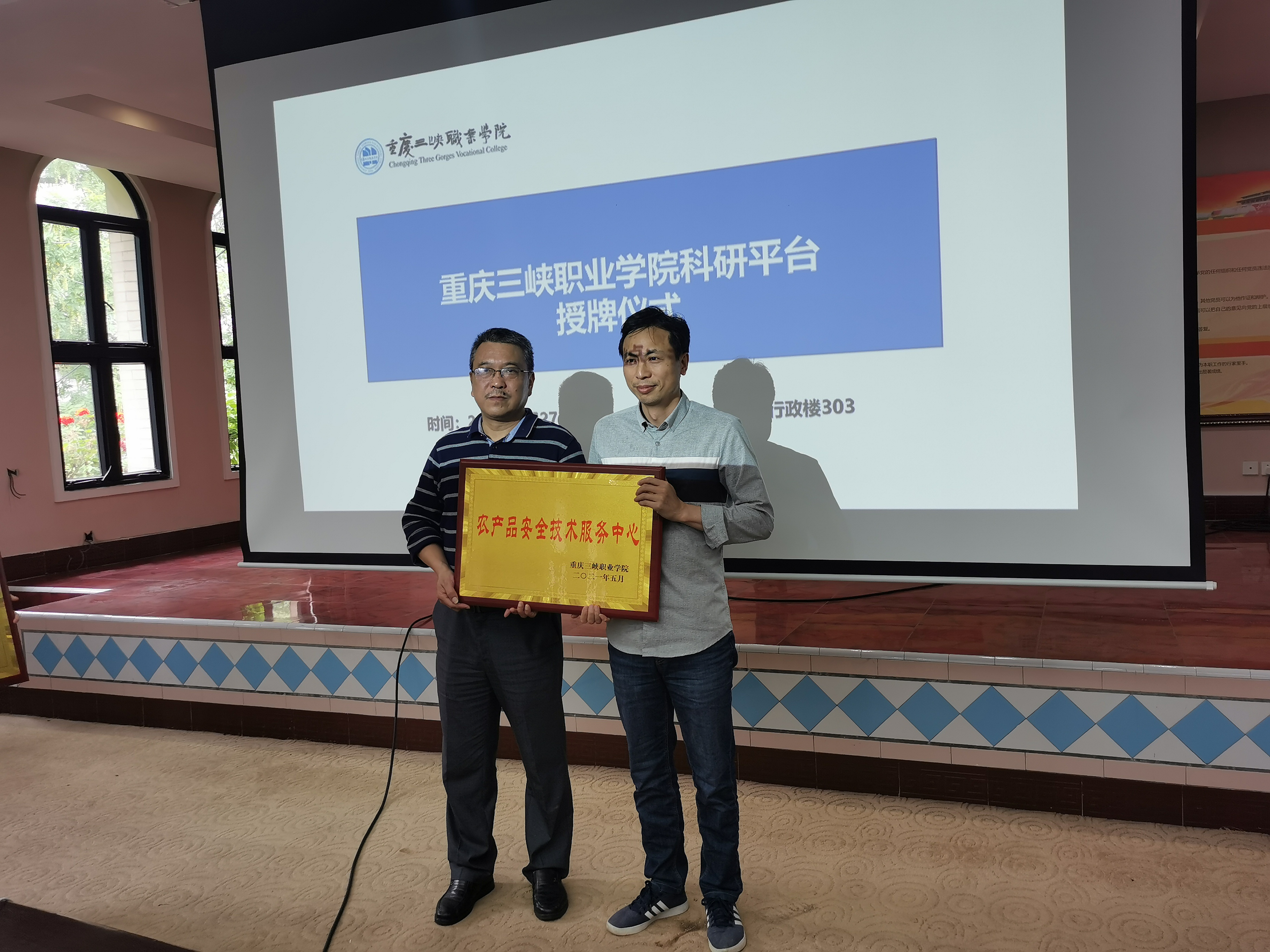 李院长为各科研平台负责人进行授牌,此次授牌成立的乡村振兴研究院依托经济管理学院建设、农业电商技术服务中心依托经济管理学院建设、农产品安全技术服务中心依托农林科技学院建设、智慧农业技术服务中心依托智能制造学院建设。