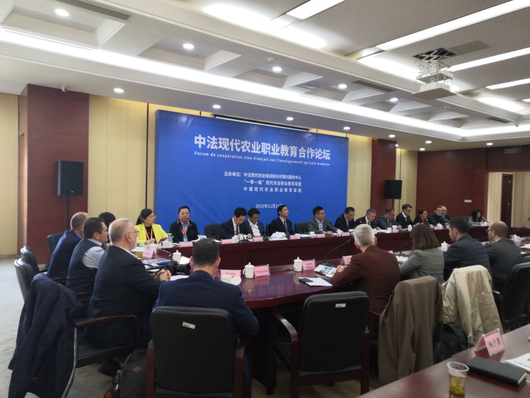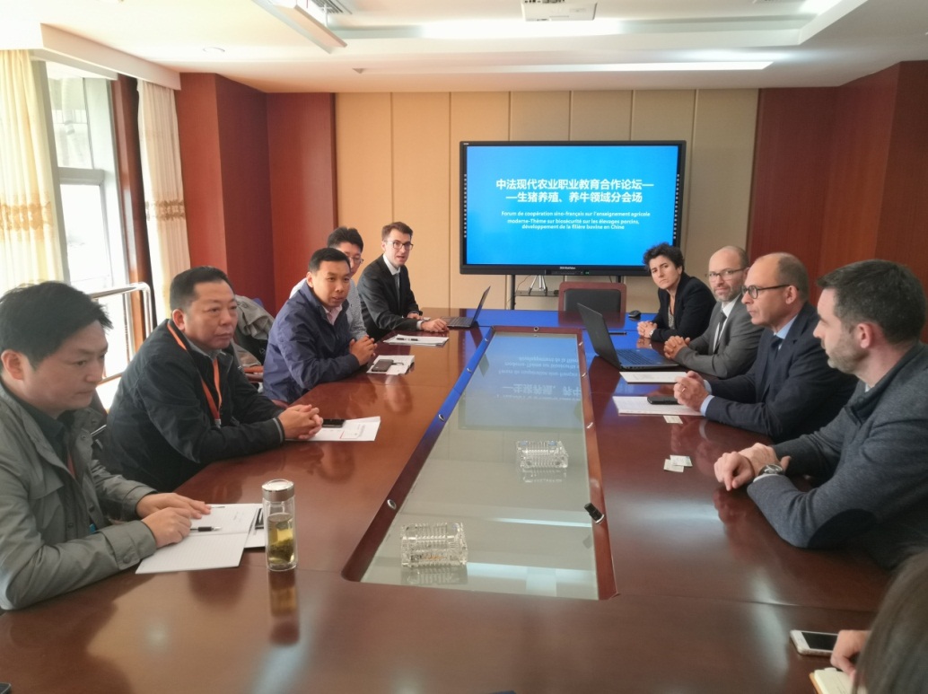 11月14日上午,学校党委书记陈章带队还参加了中法现代农业职业教育合作论坛,本次论坛由中法现代农业培训和乡村振兴服务中心、“一带一路”现代农业职业教育联盟、中国现代农业职业教育集团主办。农业部科教司教育处副处长冯剑,江苏省农业农村厅副厅长蔡恒,学院党委书记俞卫东,江苏农林职业技术学院党委副书记、院长巫建华,法国驻华大使馆农业事务副参赞辰好(ThibautNancy),法国农业部代表马克斯(MonotMax),法国驻上海总领馆代表夏睿思(FabienChareix),法国十一所地区公立农业职业培训学校校长以及中国现代农业职教集团部分成员单位代表70余人参加了论坛。论坛还安排我校参加生猪养殖、养牛分会场,我校与法国相关农业院校就专业合作建设、师生互派、科技协同研发等方面交流了合作意向。