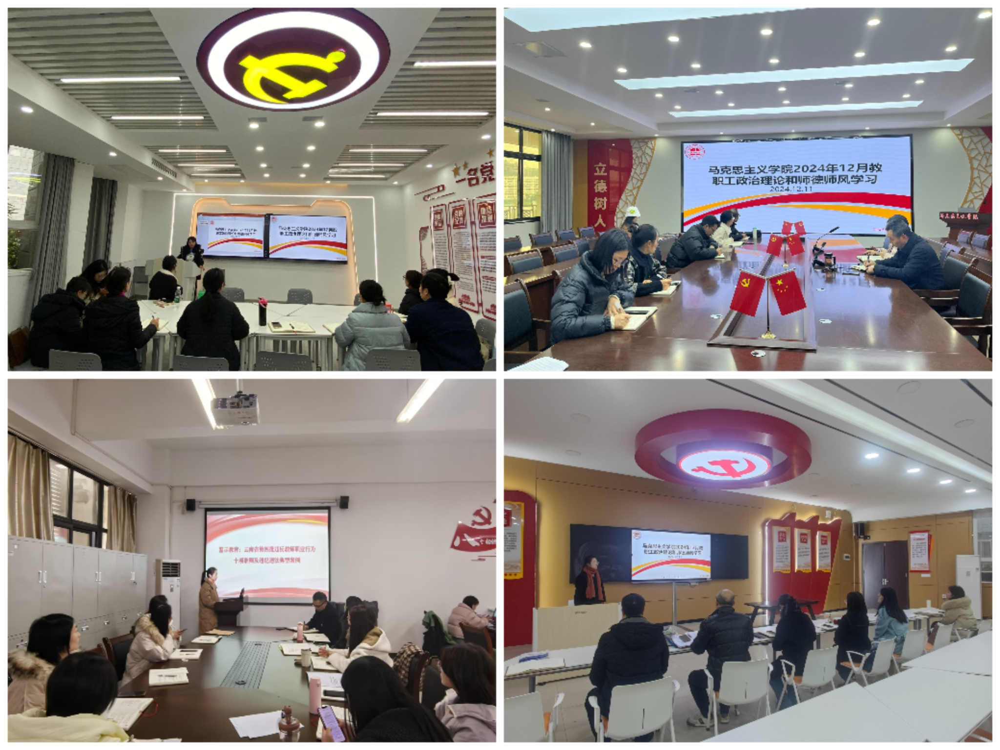 马克思主义学院12月教职工政治理论和师德师风学习以党支部为单位分散学习,各党支部认真贯彻学习政治理论和师德师风相关内容,做到了高效学、精准学、深入学。