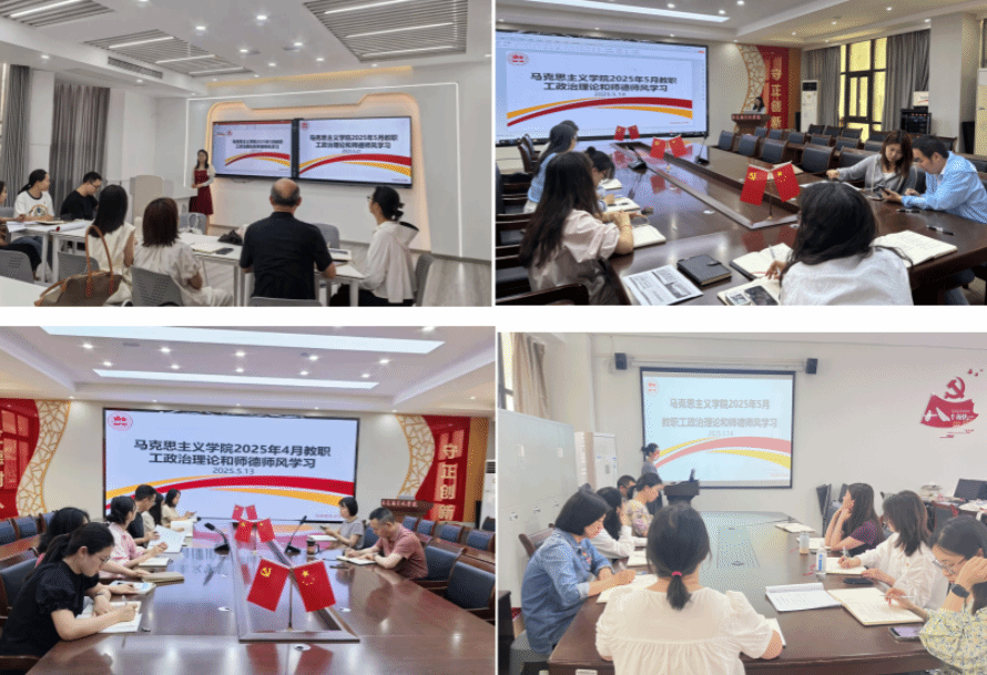 为进一步加强教职工思想政治建设,提升师德师风水平,马克思主义学院于 5 月以支部为单位开展分散式政治理论和师德师风学习活动,各支部会议均由支部书记主持召开。