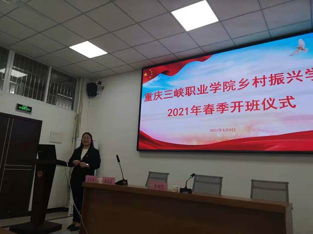 4月9日,马克思主义学院熊桂花老师在万州区龙驹镇“重庆三峡职业学院乡村振兴学院2021年春季扩招班”开班仪式上为同学们举办了“社会主义道德的源头活水-传承中华传统美德”专题讲座。