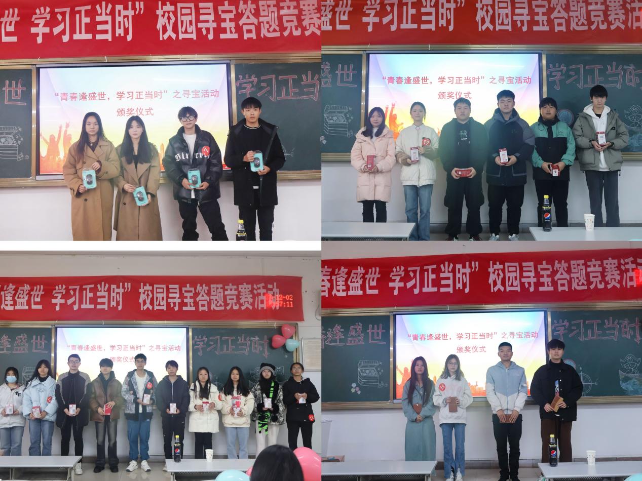 为推进习近平新时代中国特色社会主义思想“三进”工作,引导广大青年学生主动学习领会习近平新时代中国特色社会主义思想,让党的创新理论飞入“寻常百姓家”,12月2日下午,重庆三峡职业学院习近平新时代中国特色社会主义思想学习社于龙宝校区举办以“青春逢盛世,学习正当时”为主题的校园寻宝答题活动。本次答题竞赛活动由中共重庆三峡职业学院委员会主办,习近平新时代中国特色社会主义思想学习社承办,来自全校各学院的百余名学生报名参赛。