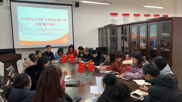 为推进“以案四说”从示警向促改深化拓展,深入贯彻习近平总书记视察重庆重要讲话精神,按照学院要求,马克思主义学院于12月17日在马院办公室对全体教师开展了“以案四说”暨“以案四改”警示教育。