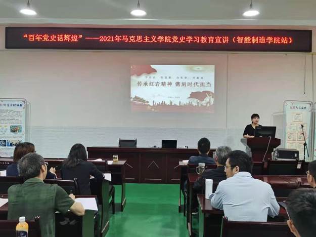 为贯彻落实习近平总书记在党史学习教育动员大会上的重要讲话精神,充分利用高校思想政治理论课主渠道,发挥高校思想政治理论课教师在开展党史学习教育中的重要作用,马克思主义学院组织了教师进二级学院开展党史学习教育系列宣讲活动。