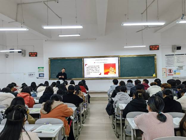 为认真学习贯彻党的十九届六中全会精神,从党的百年奋斗的重大成就和历史经验中汲取智慧和力量,11月25日下午,学院党委委员、纪委书记王凯走进课堂以“百年奋斗 再启新程——学习党的十九届六中全会公报”为专题为2021级畜牧兽医7班和2021级物医疗技术3班学生讲授了一堂立意深刻、内涵丰富、理论与实际联系紧密的思政课。