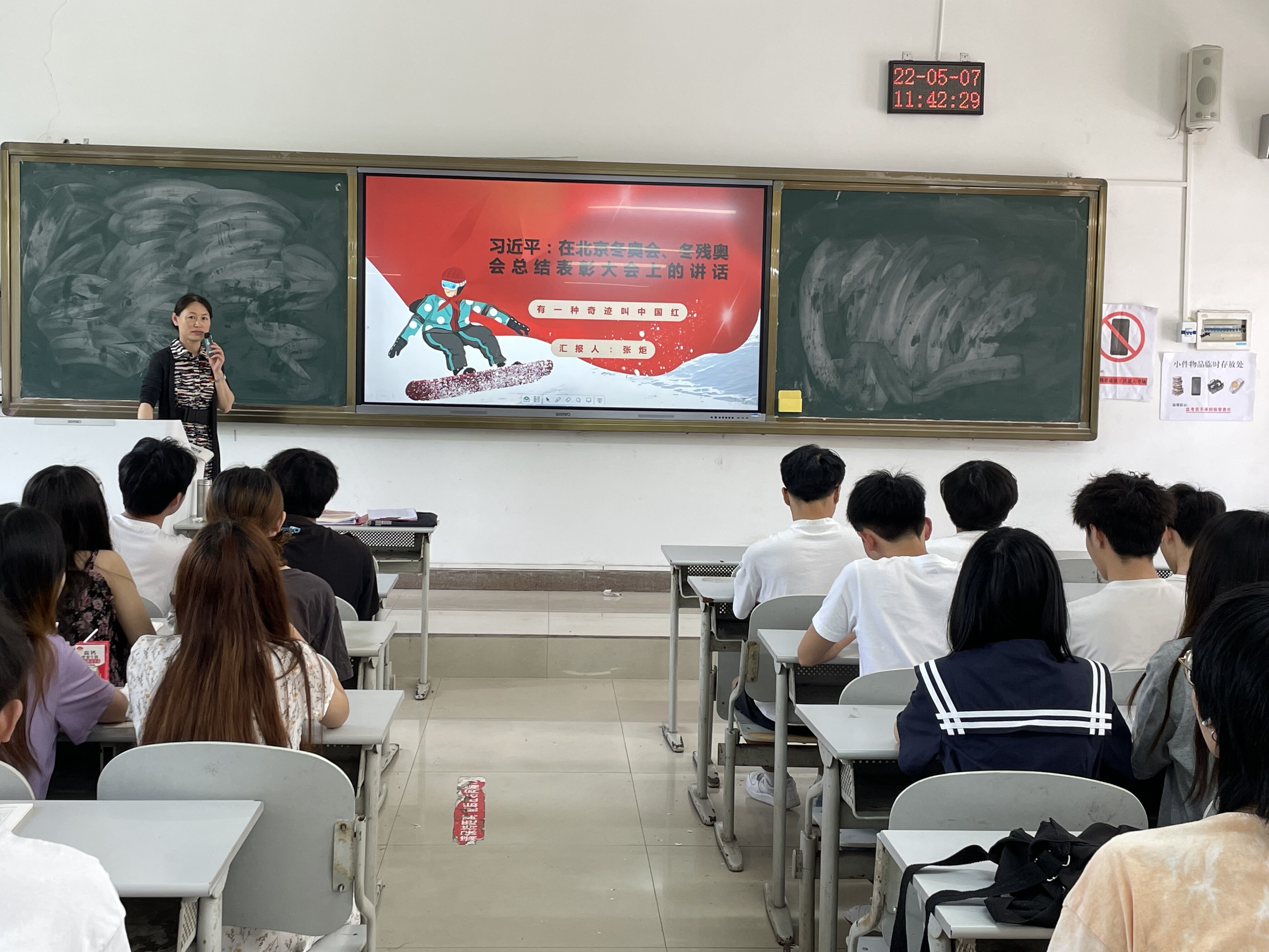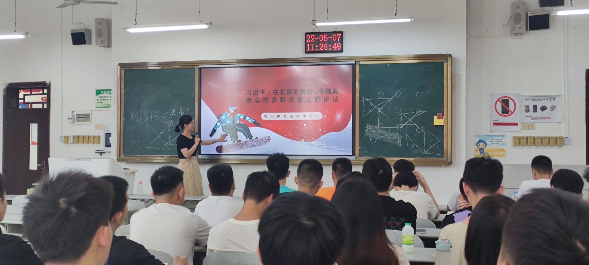 为深入学习贯彻习近平总书记在北京冬奥会、冬残奥会总结表彰大会上的重要讲话精神,帮助我院学子回望中国冬奥历程,感受北京冬奥精神,马克思主义学院教师进班级组织全体学生学习了习近平总书记在北京冬奥会、冬残奥会总结表彰大会上的讲话精神。