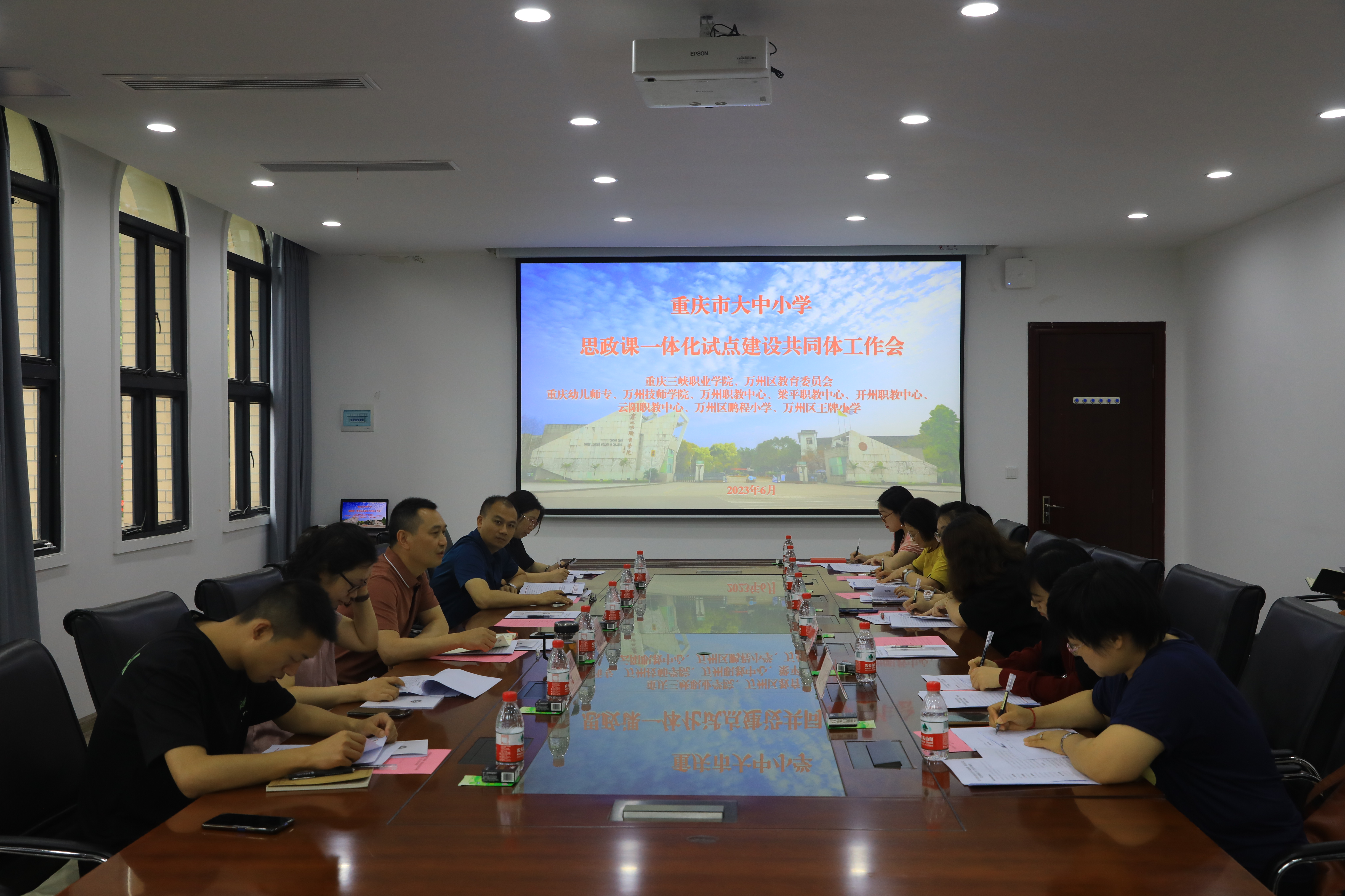 为深入学习贯彻习近平新时代中国特色社会主义思想,持续深入推进思政课改革创新,扎实推进大中小学思政课一体化建设高质量发展,2023年6月15日,学院召开大中小学思政课一体化共同体建设工作会。会议由学校党委委员、宣传部部长、马克思主义学院院长姜荣主持,重庆幼儿师范高等专科学校、重庆万州技师学院、重庆市万州职业教育中心、重庆市梁平职业教育中心、重庆市开州区职业教育中心、重庆市云阳职业教育中心、重庆市万州区鹏程小学、重庆市万州区王牌小学等共同体成员单位思政教学负责人和教师代表参会。