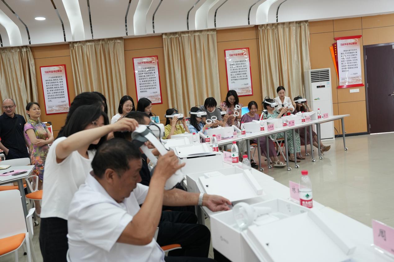 接下来在马克思主义学院虚拟仿真实践教学中心举行了集体备课会,分为同课异构教学展示、虚拟仿真教学体验两个环节。重庆市万州高级技工学校陈霜老师、达州职业技术学院沈玲老师、开州职业教育中心张芮嘉老师、重庆三峡职业学院熊桂花老师依次进行教学展示,达州市职业高级中学李明亮副校长、重庆市万州区鹏程小学牟永华副校长分别做了精彩点评,表示本次集体备课充分体现了思政课教学改革创新方式方法,展现了新时代思政课教师的多元教学风格。重庆三峡职业学院沈龙琼老师依托VR虚拟仿真思政课程资源,为大家带来沉浸式、体验式思政课堂,数字化激活思政课新生态,为推进“大思政课”建设提供了新思路。