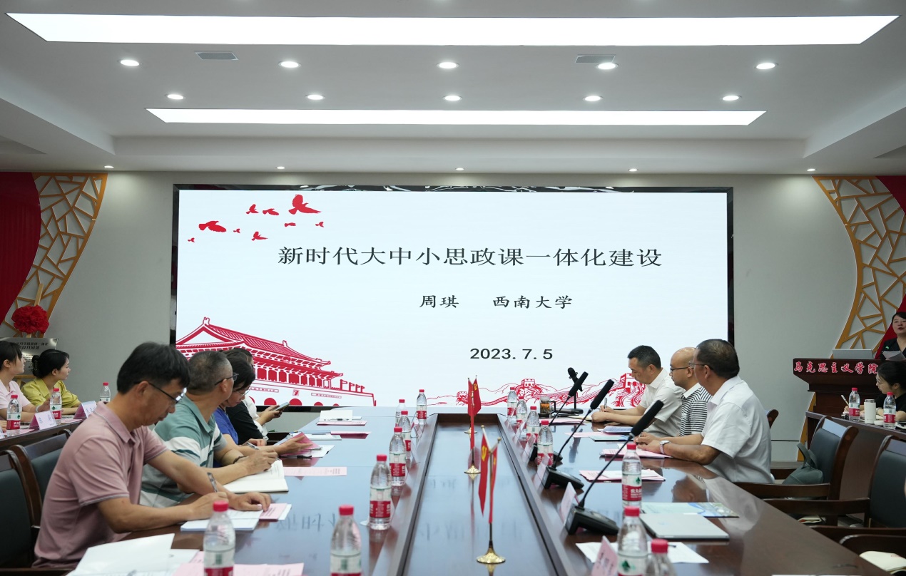 教育部青年长江学者、西南大学马克思主义学院博导周琪教授作了题为《新时代大中小思政课一体化建设》的主旨报告。周教授主要从新时代思政课一体化把握方式和大中小思政课一体化的贯通两个方面分享了大中小学思政课一体化建设的经验及问题思考。与会老师们纷纷表示深受启发,将努力在今后的工作中推动大中小学思政课一体化建设高质量发展。