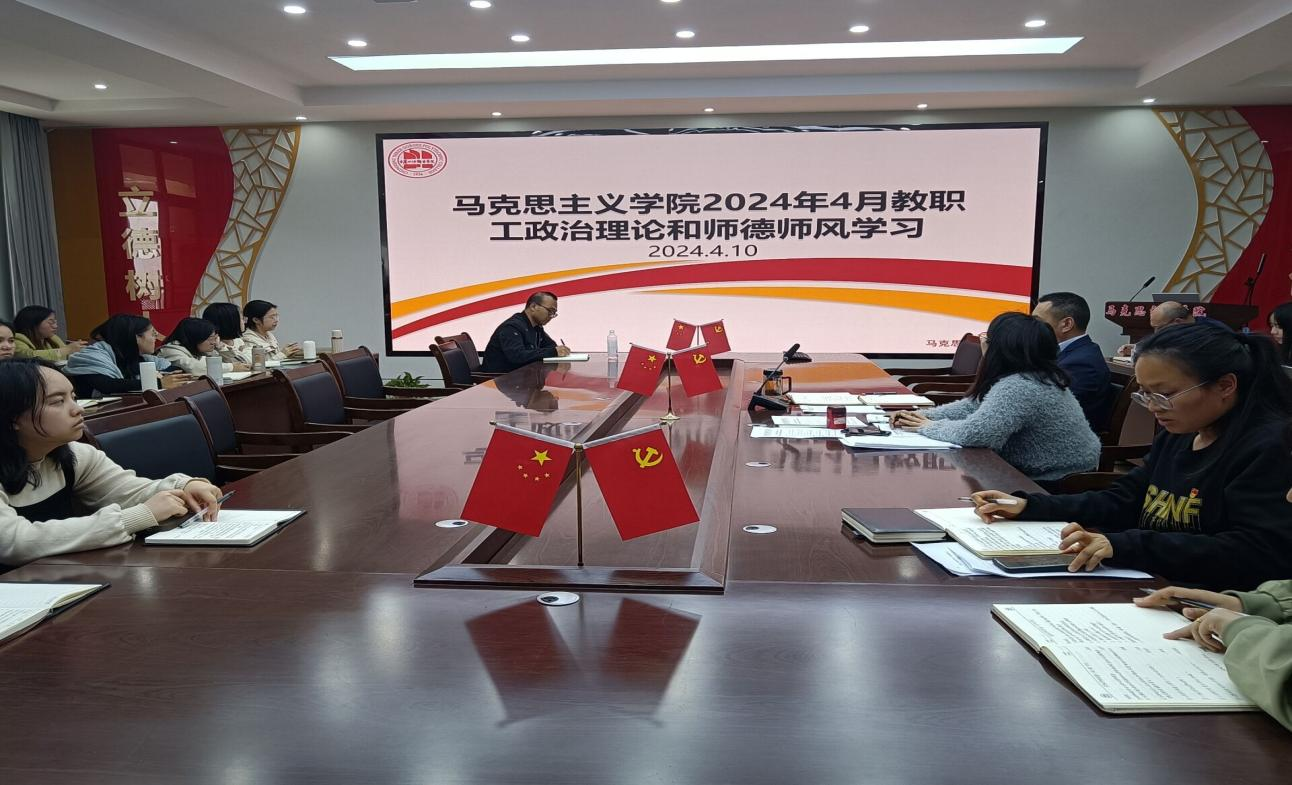 2024年4月10日下午,马克思主义学院召开教职工政治理论学习和师德师风及警示教育学习会,全体教职工参加,学院党委委员、宣传部部长、马克思主义学院院长姜荣主持本次会议。