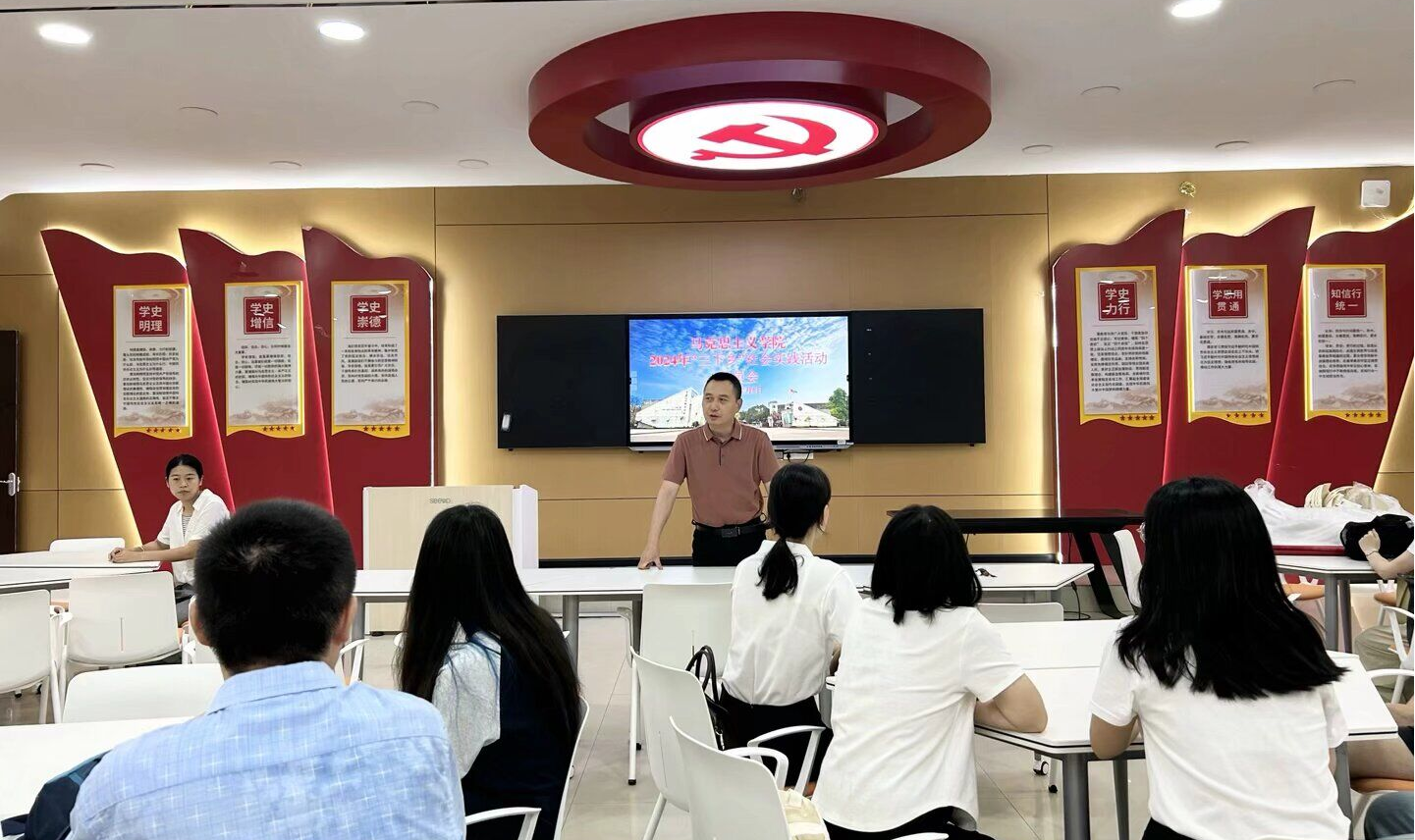 7月8日上午,马克思主义学院在博雅楼107召开了暑期“三下乡”社会实践活动出发前动员大会。此次大会旨在进一步统一思想、明确任务、强化责任,确保教师和学生们以高度的热情和饱满的斗志投身到即将开展的2024年暑期“三下乡”社会实践活动中去。此次动员大会由学院党委委员、宣传部部长、马克思主义学院院长姜荣主持,全体参与暑期“三下乡”社会实践活动的教师及学生参会。
