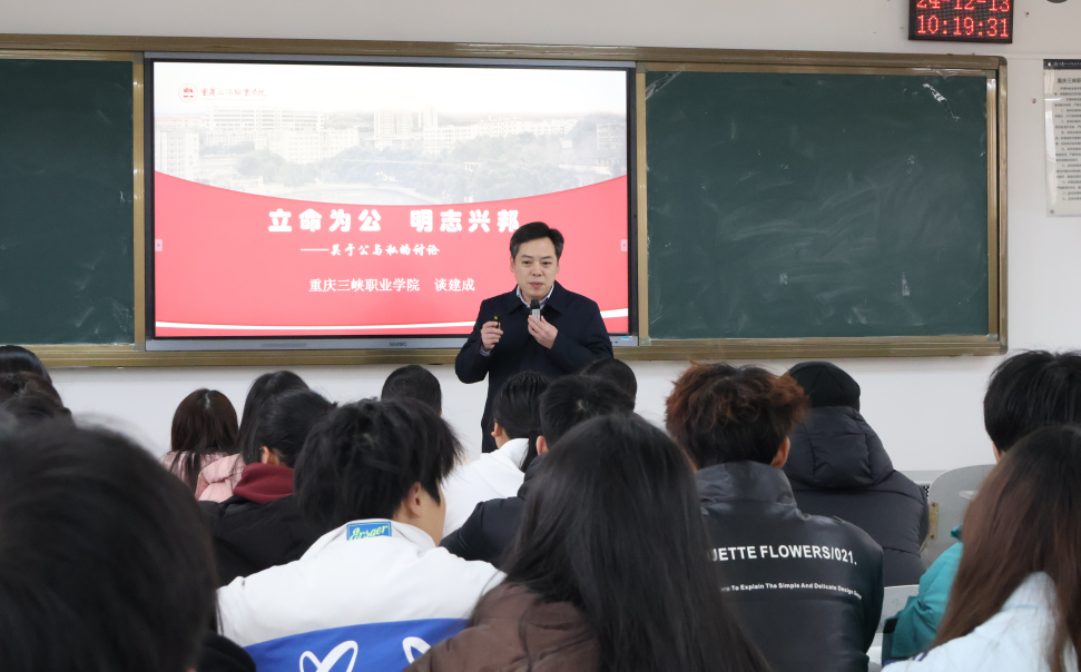 谈书记以《立命为公 明志兴邦》为题,他从古今、中西的不同角度对比分析公与私的问题,并结合自身工作实际做了深入分析,充满了哲学思维和历史思维,以丰富的历史故事引导学生将个人的职业生涯规划与国家民族命运紧密联系起来,努力争做德智体美劳全面发展的社会主义建设者和接班人。