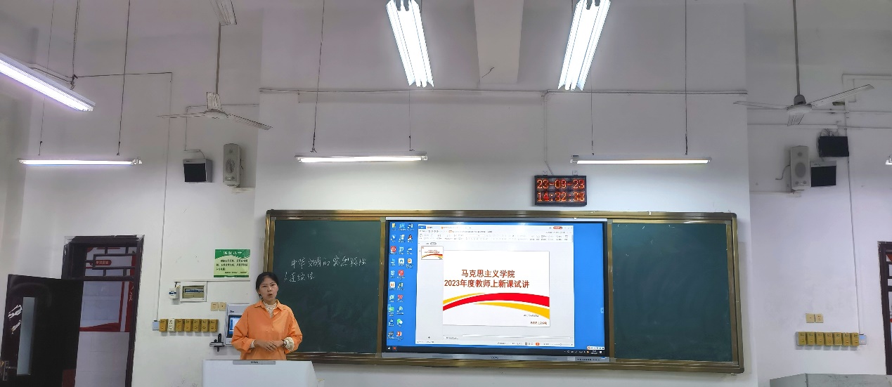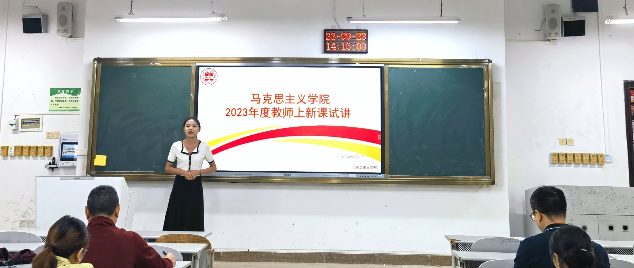 为提高8位新入职教师的课堂教育教学水平和教学组织能力,帮助新入职教师尽快适应工作岗位和角色转换,实践中锻炼新教师的教学能力,促进教师间的学习和交流,切实提升教学质量,9月23日下午14:00,马克思主义学院办公室联合各教研室,在博雅楼108教室开展2023年度教师上新课试讲活动。学院党委委员、宣传部部长、马克思主义学院院长姜荣、全体教研室主任及相关教师参加此次新教师试讲活动。