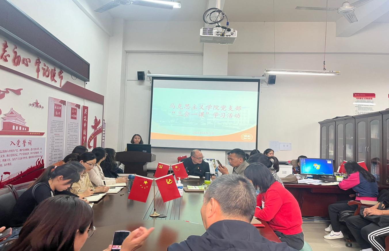 10月12日下午,马克思主义学院直属党支部在博雅楼109室开展“三会一课”学习,会议由党支部副书记丁翠娟主持。