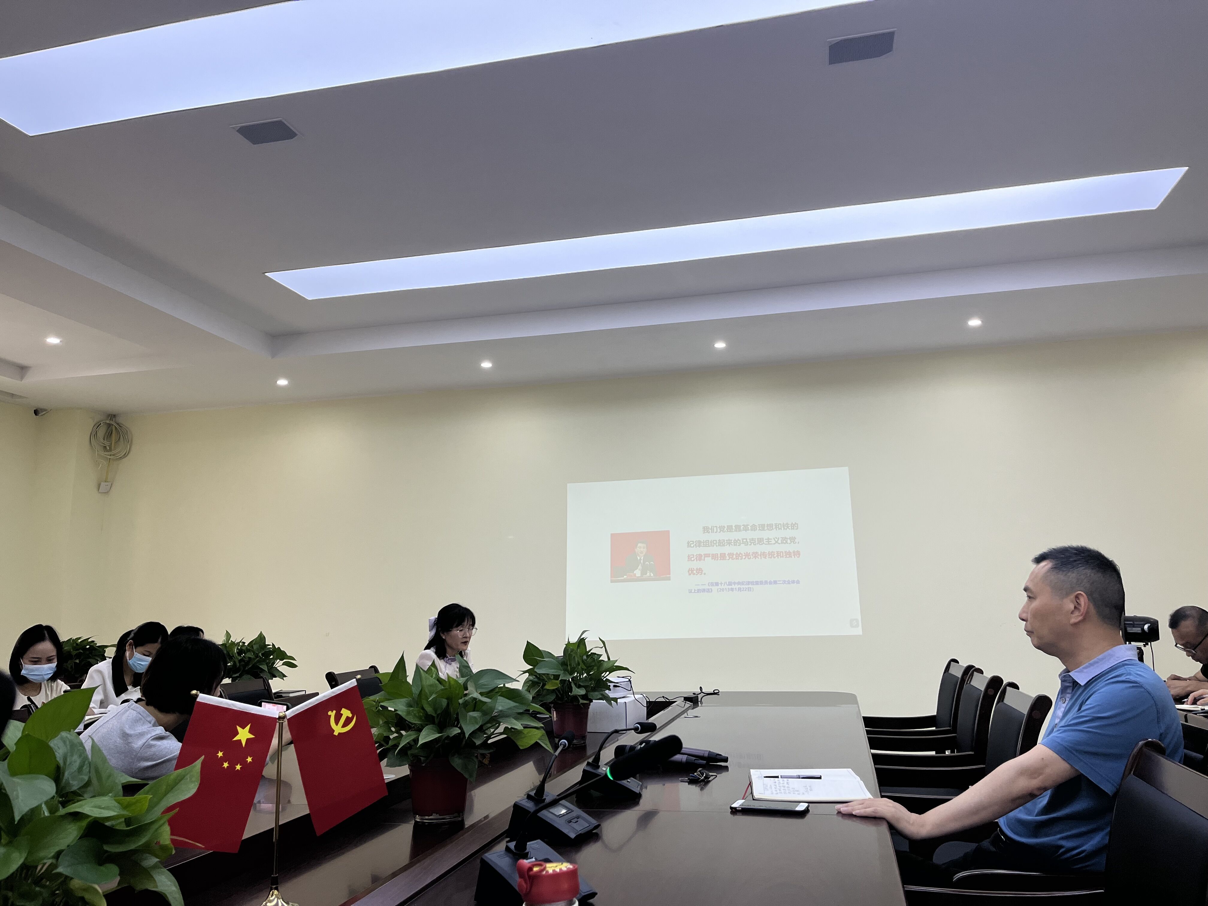 本次党课从全面掌握党内法规体系、纪律严明是党的光荣传统、遵守党规党纪,强化纪律执行三个维度进行了全面阐释。丁翠娟同志准确解读了党内法规体系概念,从纵向1+4制度板块、横向1+4制度板块深刻阐明了如何正确把握党内法规框架结构。从新民主主义革命时期、社会主义革命和建设时期、改革开放和社会主义现代化建设新时期、中国特色社会主义新时代四个时期系统分析了纪律严明是党的光荣传统。同时,从提高学习本领,做到心中有“法”;坚定理想信念,依靠自律来守纪律讲规矩;自觉接受监督,提高纪律贯彻执行力三个方面提出了马克思主义学院全体教师要提高政治站位,自觉遵守党规党纪,强化纪律执行。