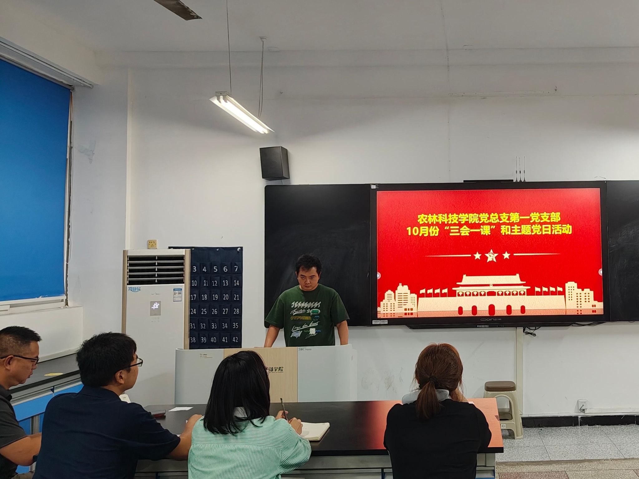 10月13日,农林科技学院党总支第一党支部在农林楼607教室开展了10月份“三会一课”学习和主题党日活动,全体党员参加,支部宣传委员游龙同志主持。