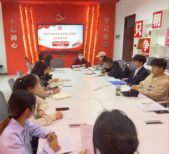 2023年5月9日,农林科技学院第二党支部在农林楼203会议室开展党员发展大会,会议由支部组织委员徐丹丹同志主持。