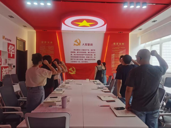 会议最后一项,在支部书记吴琼同志的带领下,本次发展的预备党员宣誓,希望被接收为预备党员的同志能够不忘初心,继续努力,以党员标准严格要求自己。